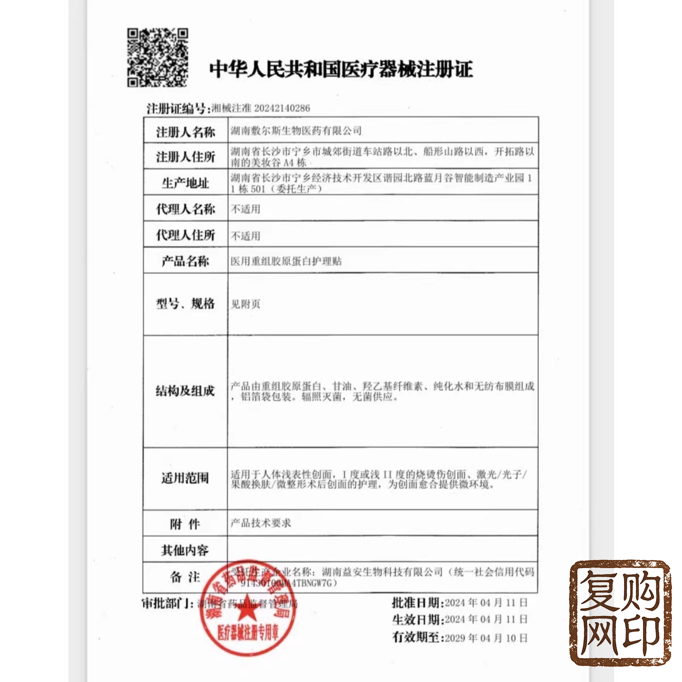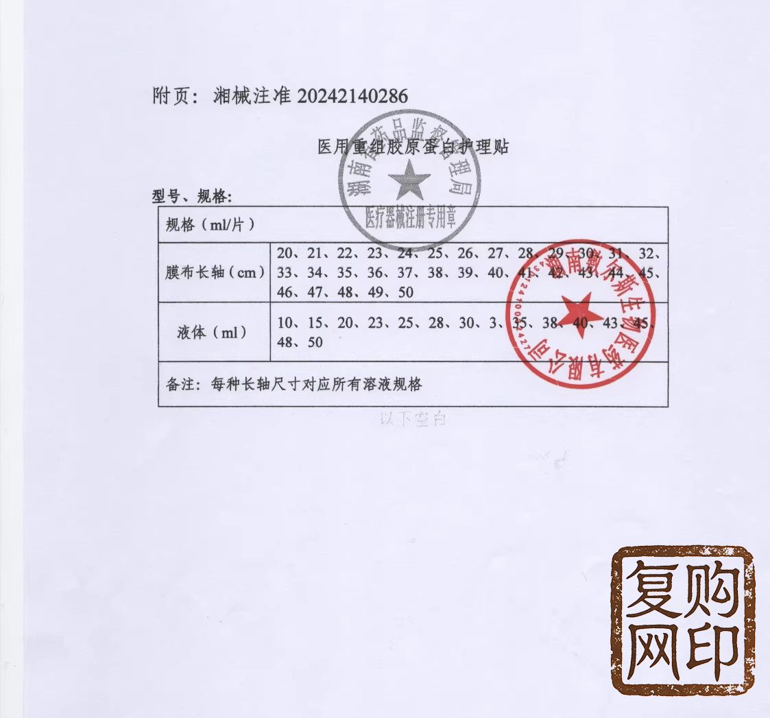 医用、重组胶原蛋白、护理贴敷贴、面部修护、护理膜、冷敷贴