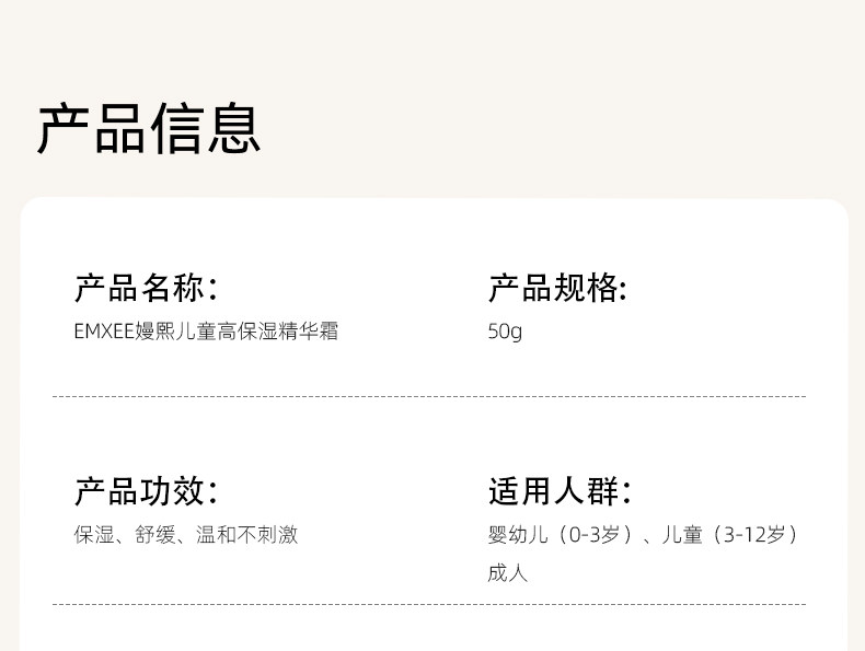 嫚熙、儿童高保湿精华霜、宝宝面霜、润肤霜、冬季补水滋润、舒缓身体霜