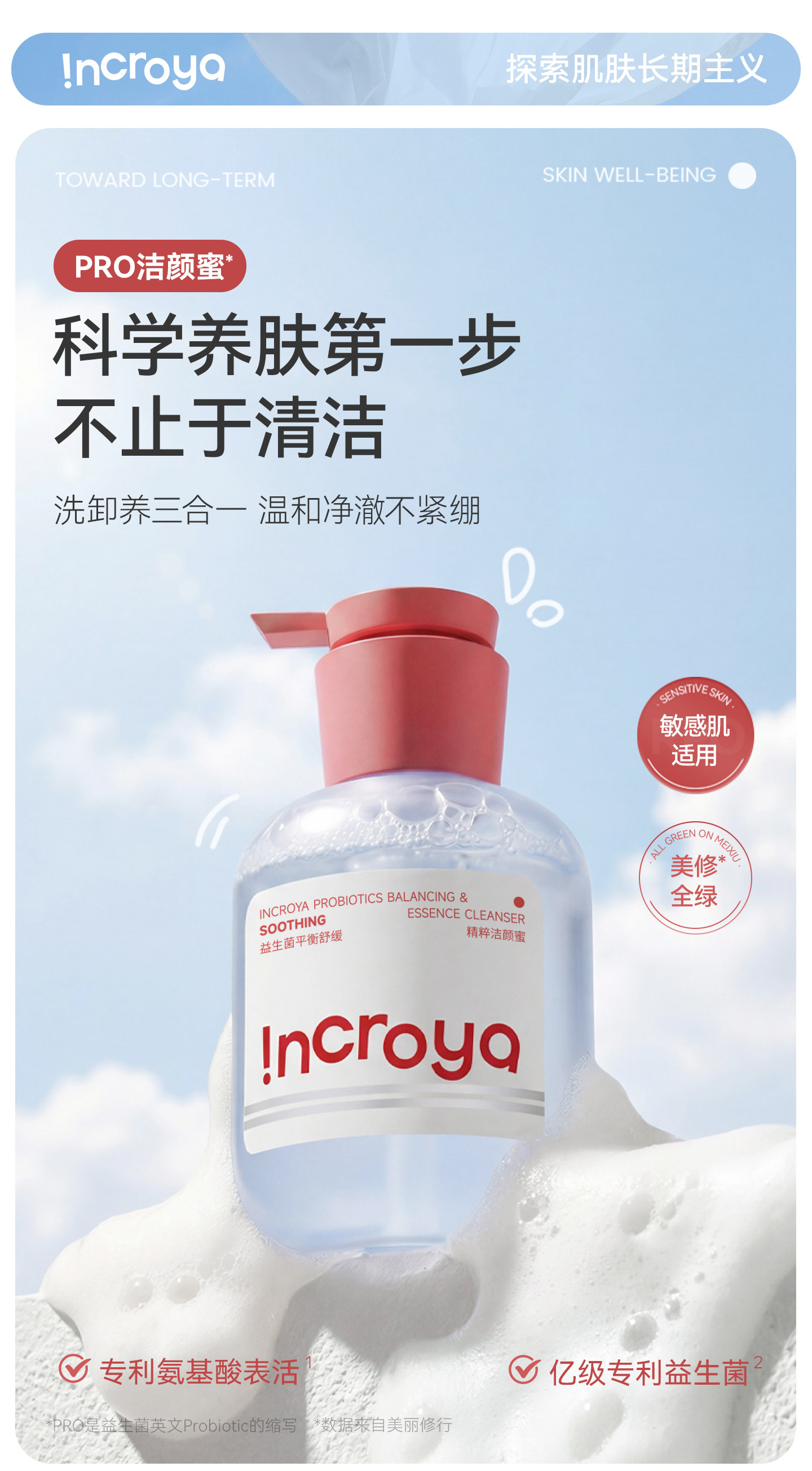 INCROYA益生菌Pro洁颜蜜洗面奶深层清洁氨基酸敏感肌温和洁面