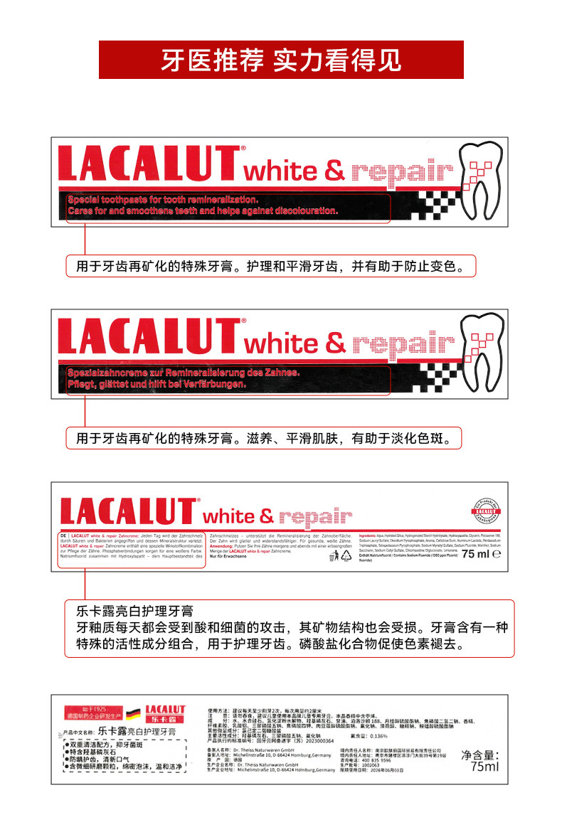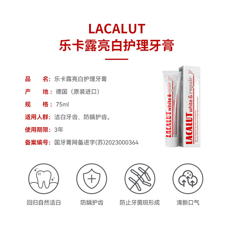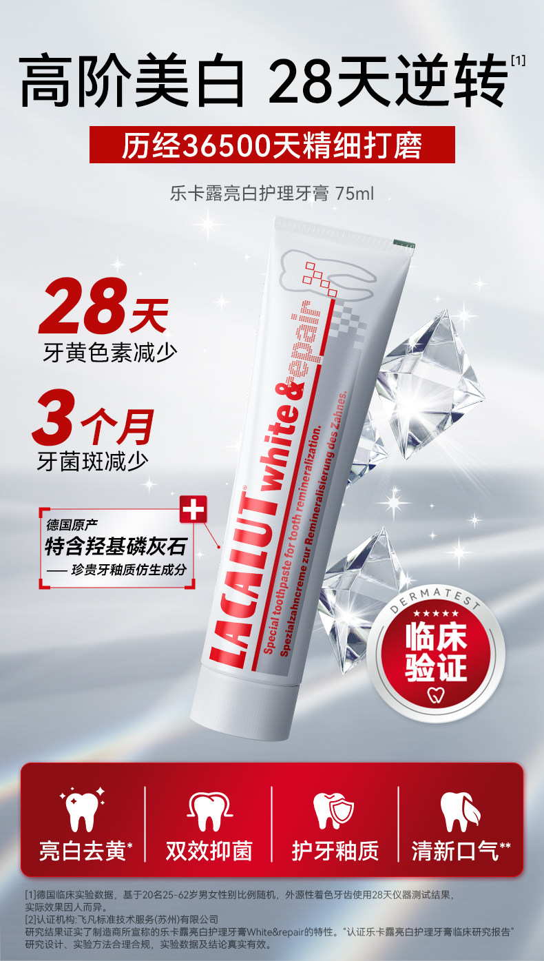 德国进口 乐卡露牙膏 亮白护理 羟基磷灰石 旅行装 官方旗舰店