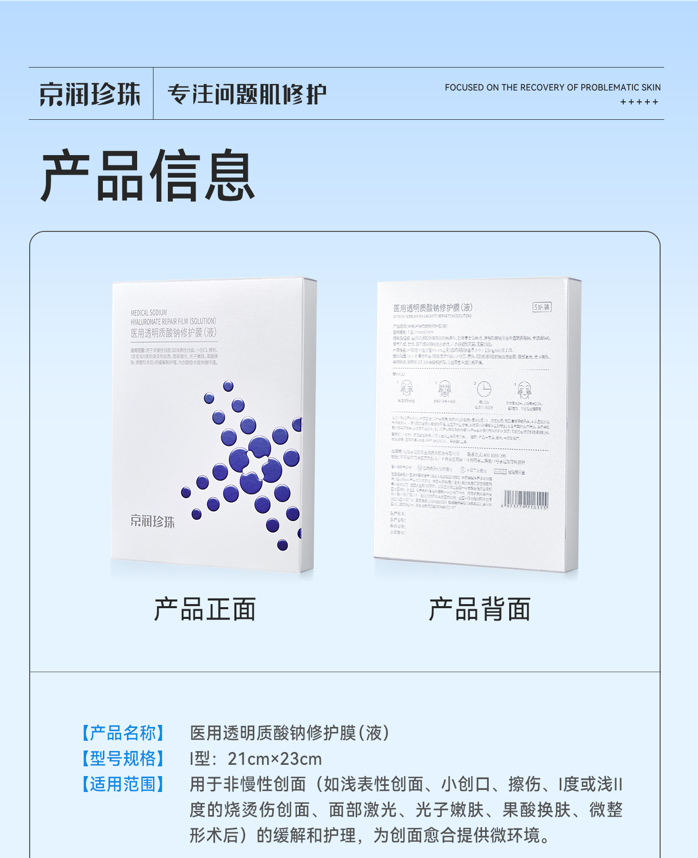 京润珍珠医用透明质酸钠修护膜正品敷料非面膜冷敷贴术后修护补水