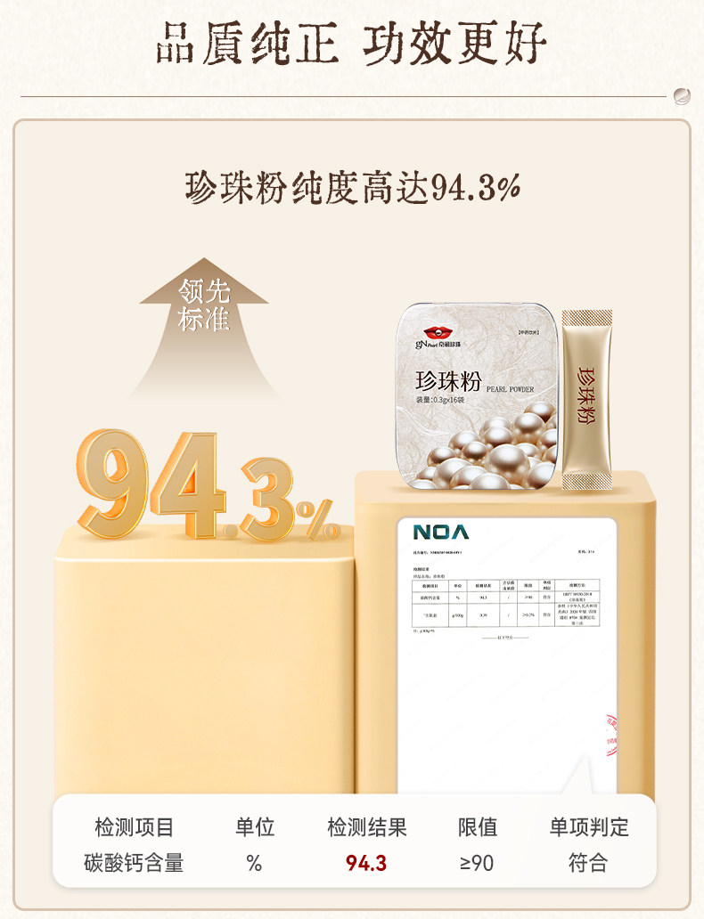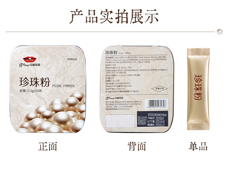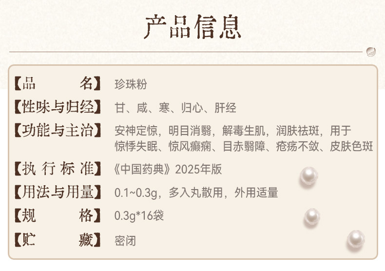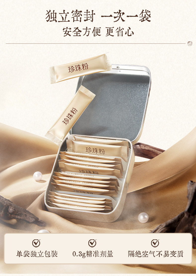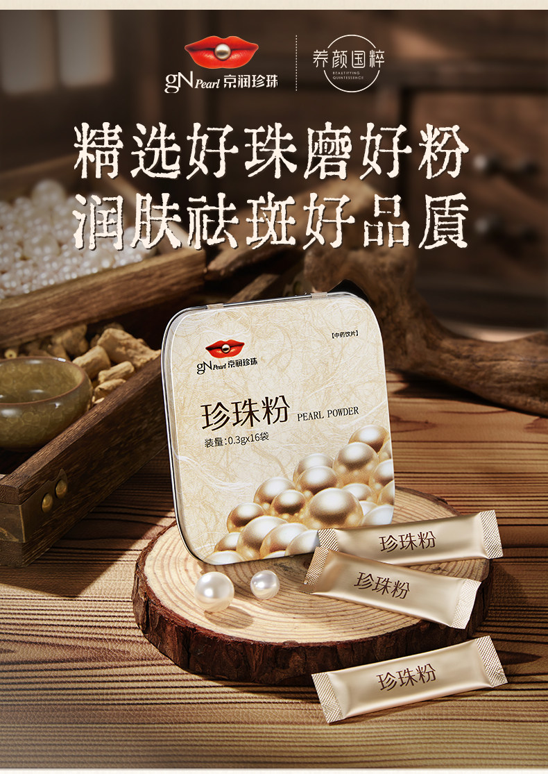 京润珍珠 口服珍珠粉 0.3g*16袋 安神助眠 养颜祛斑 可食用 纯珍珠粉