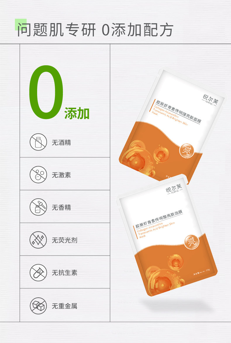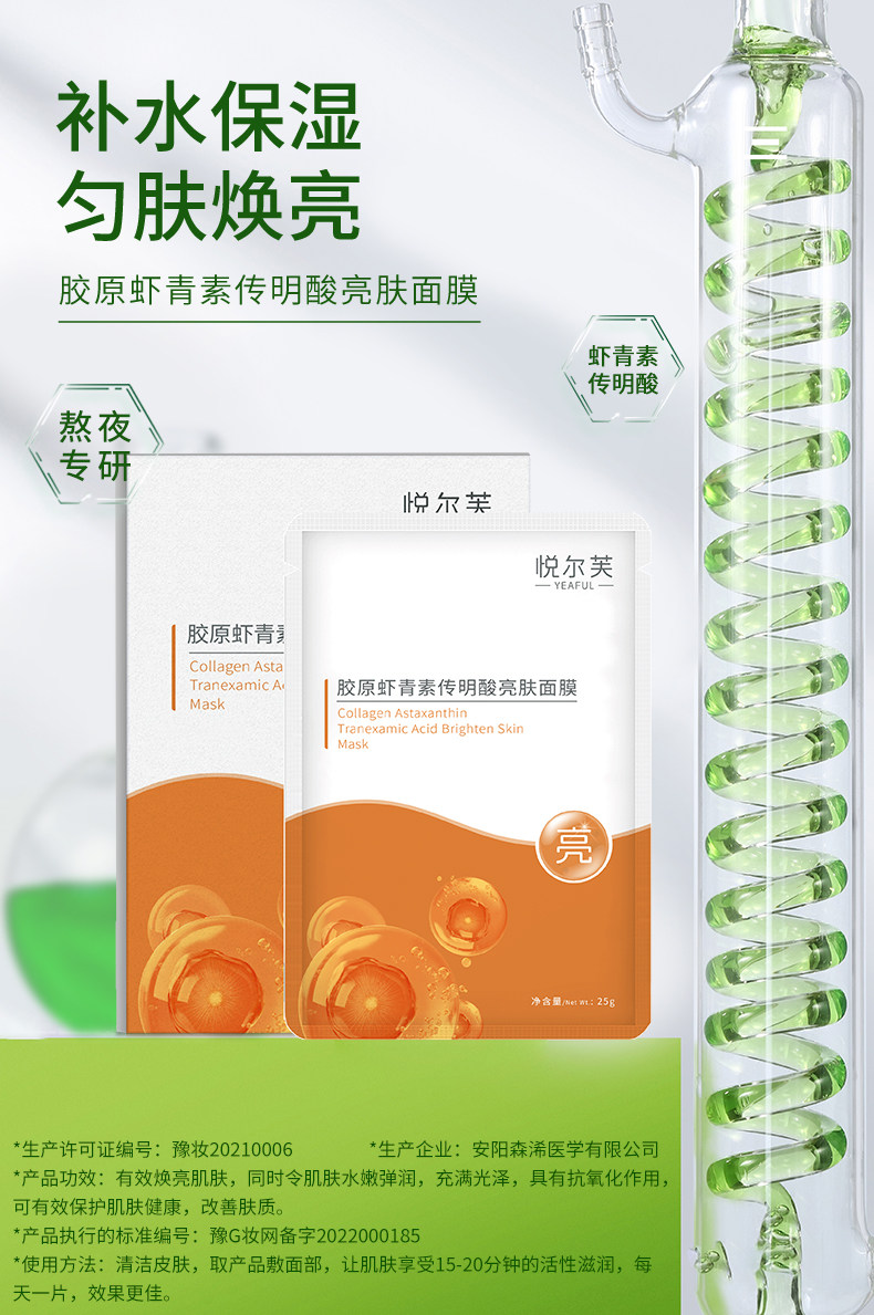 悦尔芙 胶原虾青素 传明酸 亮肤面膜 补水保湿 水嫩弹润 橙膜