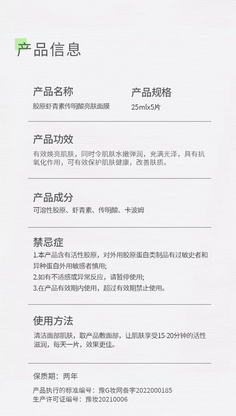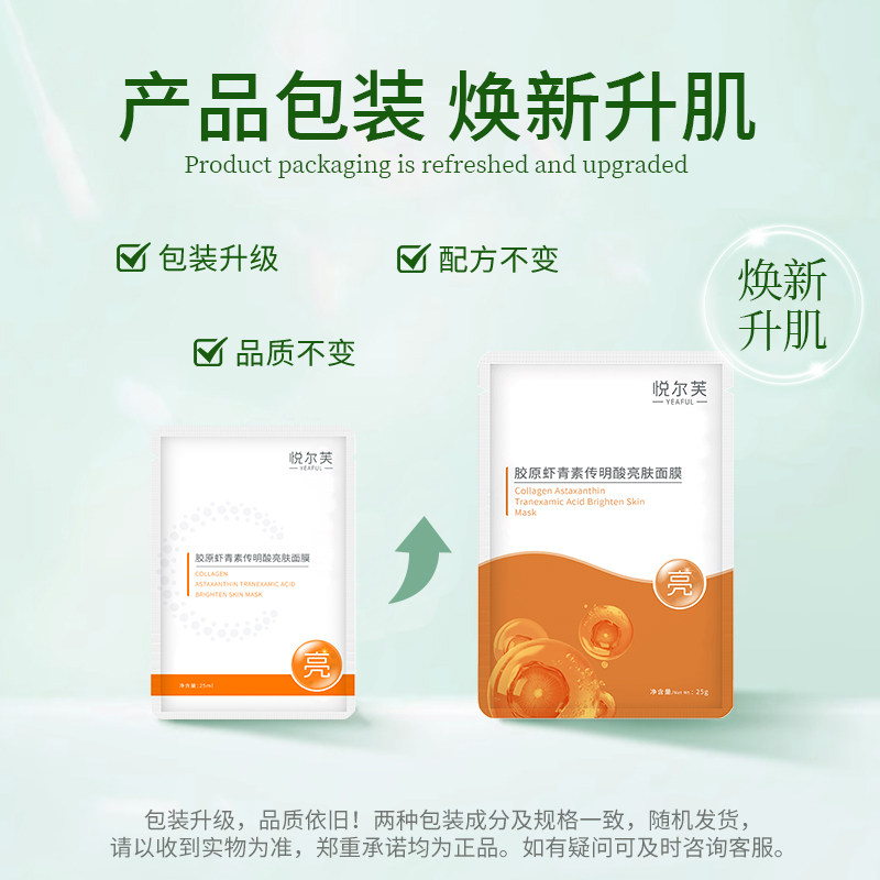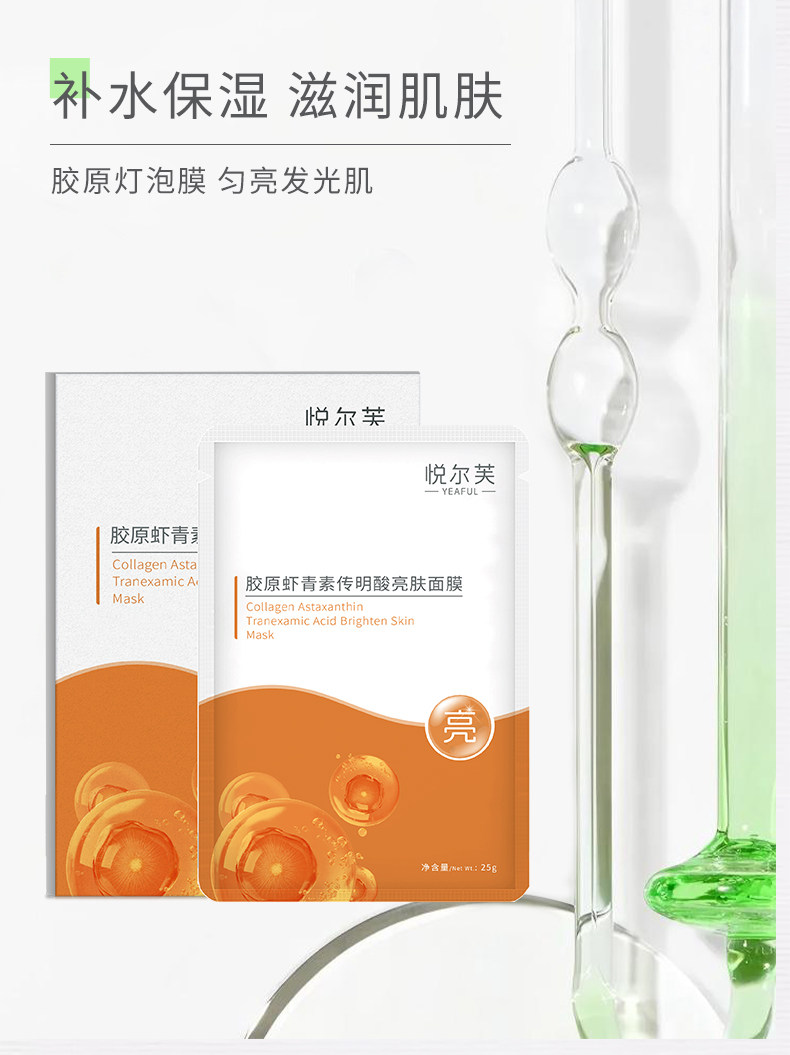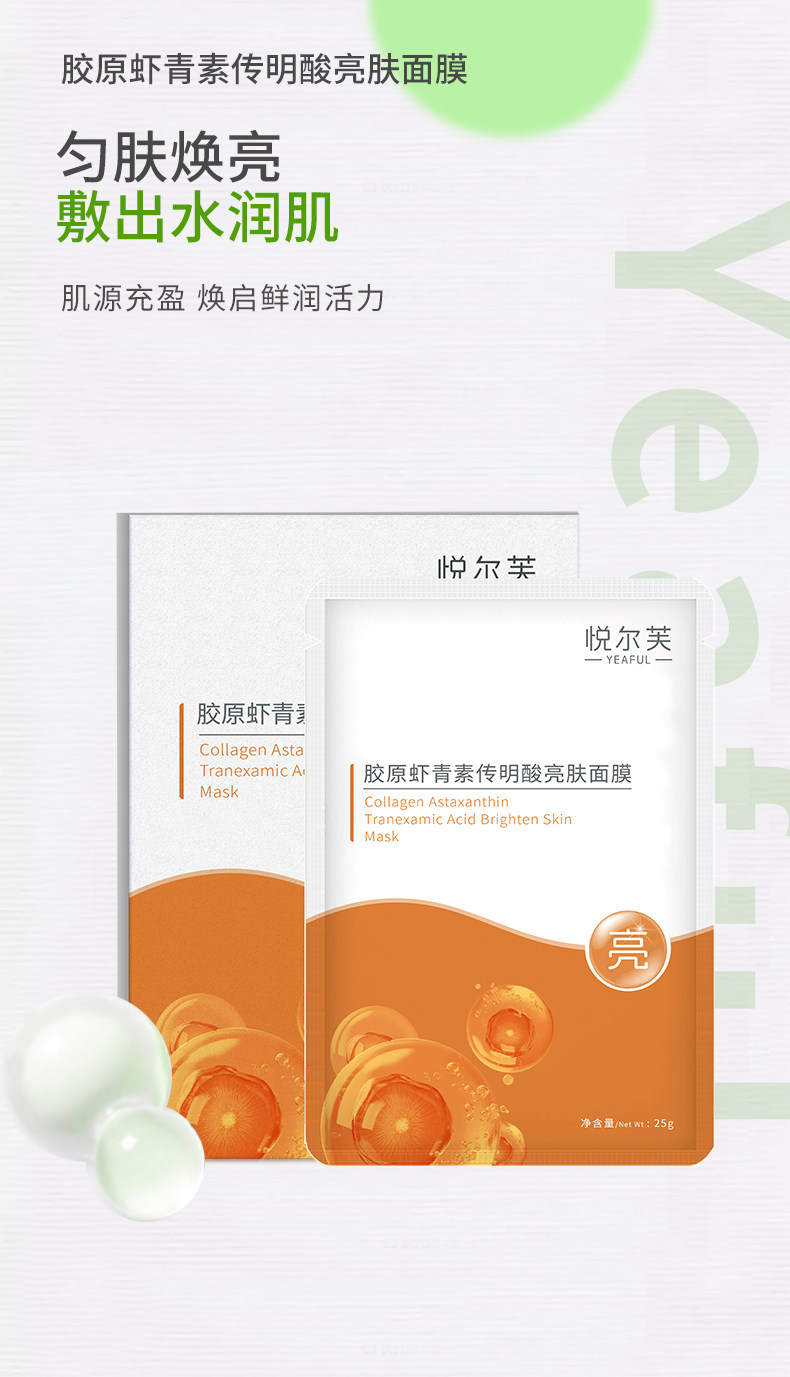 悦尔芙胶原虾青素传明酸亮肤面膜补水保湿亮肤贴水嫩弹润肤橙膜