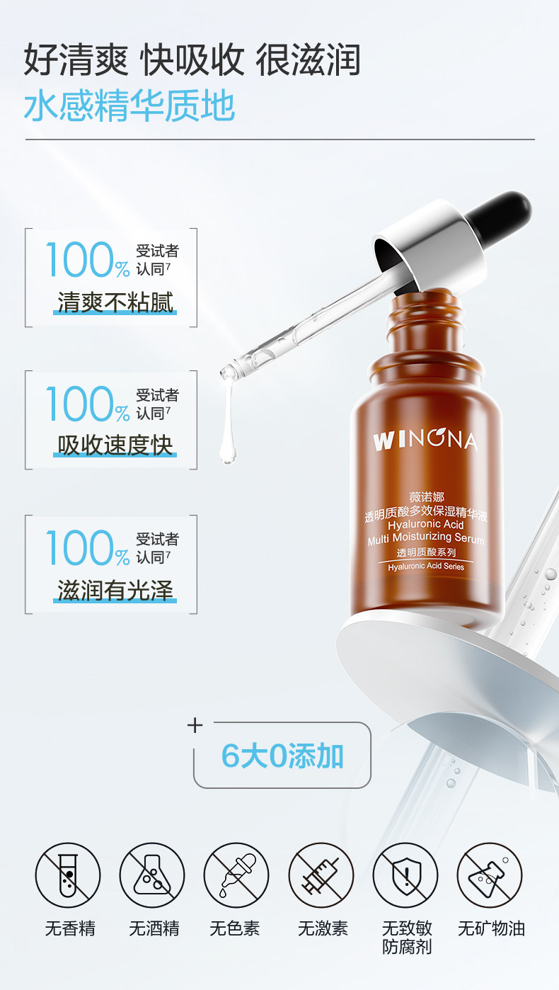 薇诺娜、透明质酸、保湿精华液、补水滋润、舒缓敏感肌、干皮适用