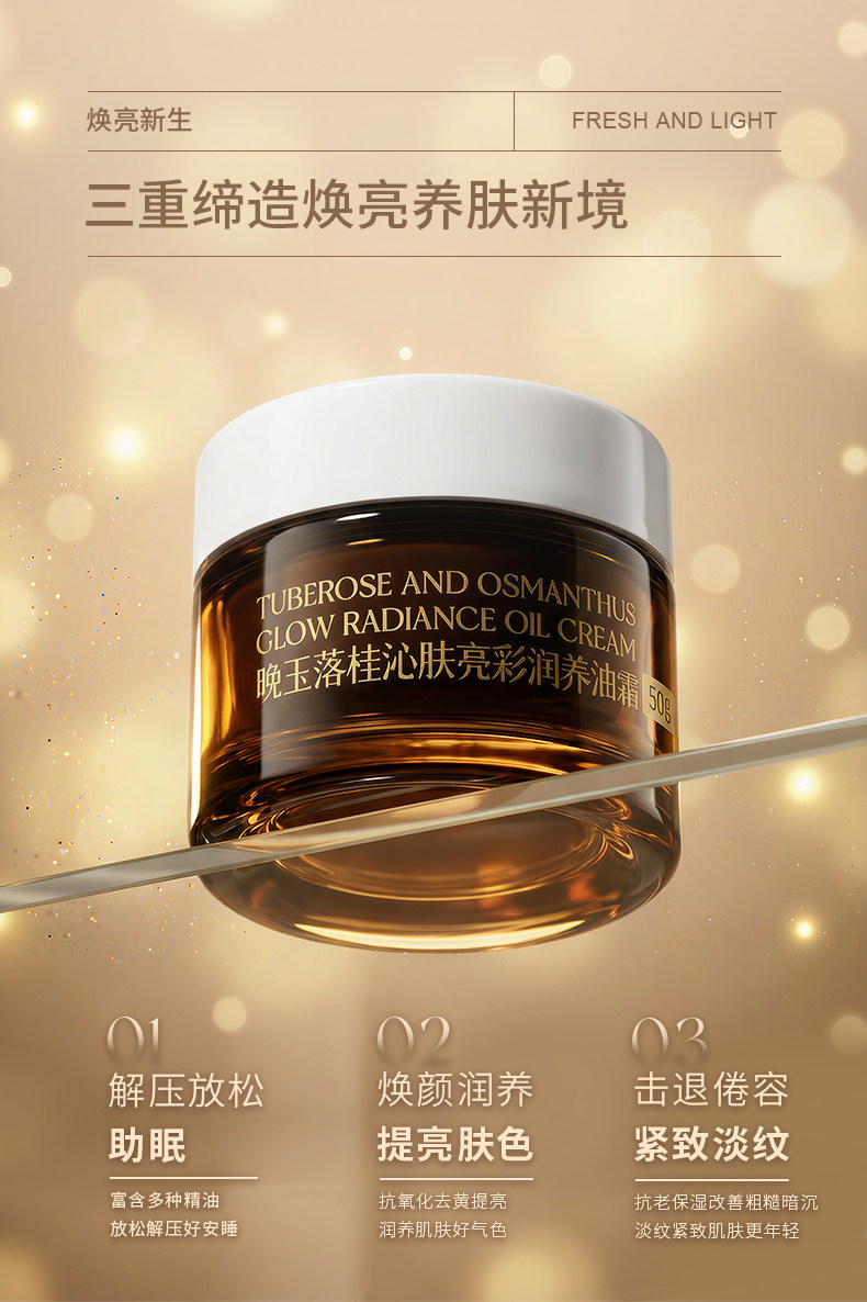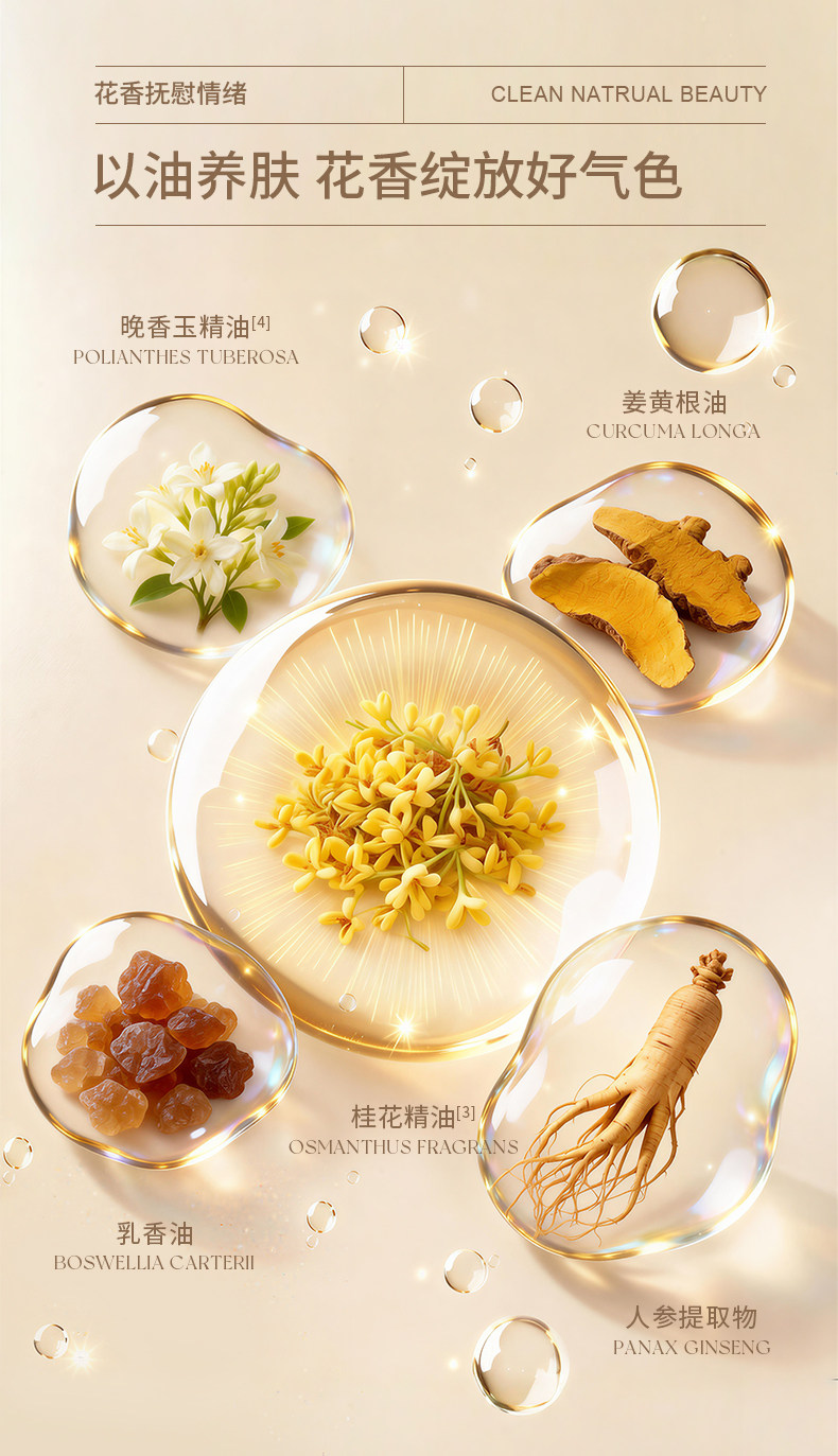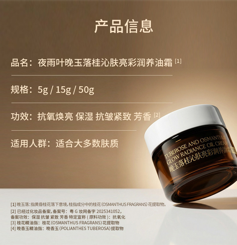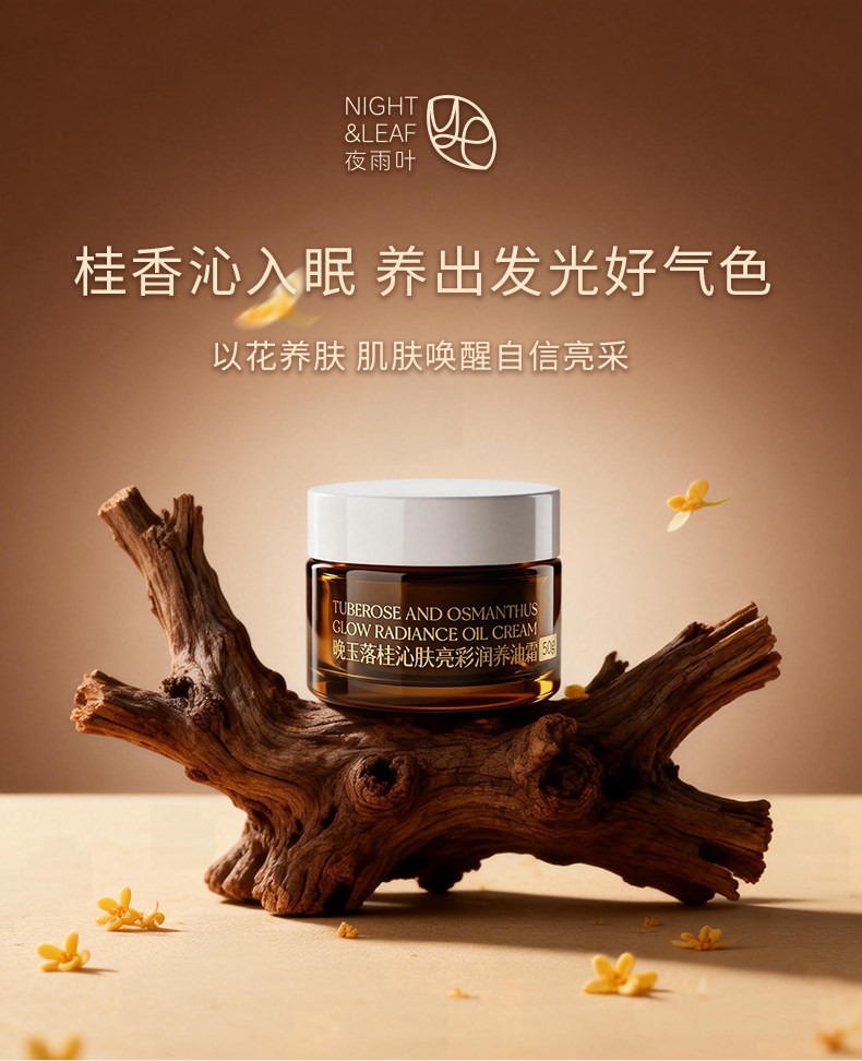 夜雨叶、晚玉落桂、亮彩油霜、助眠香膏、去黄提亮、抗皱精油