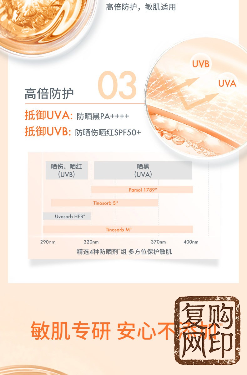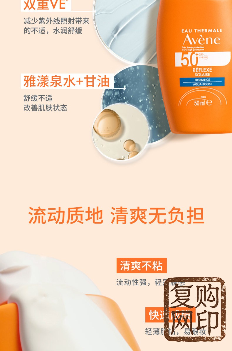 雅漾、清透水润、小金刚防晒乳、50ml、SPF50+、高倍防晒霜