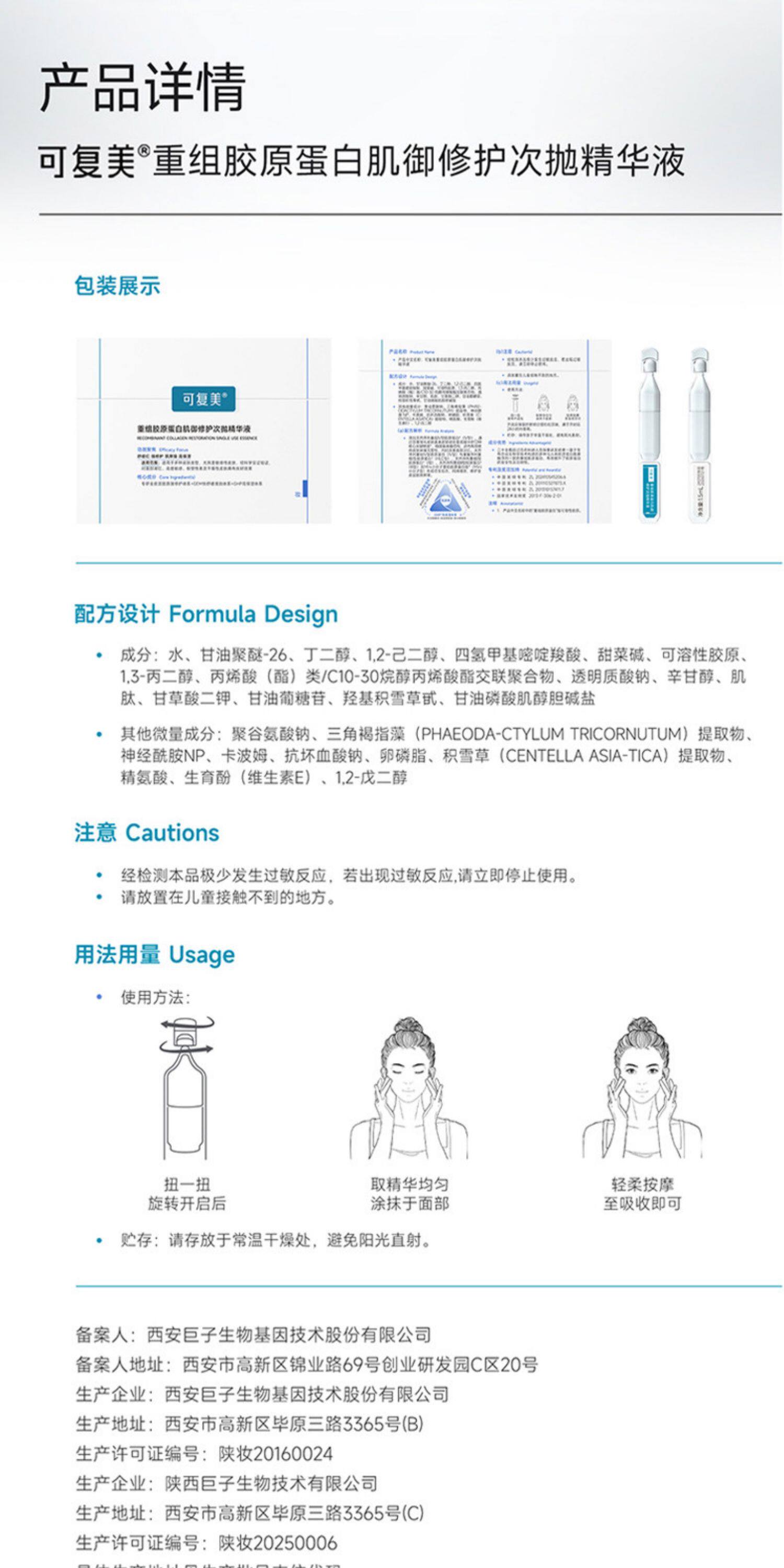 可复美、胶原棒2.0、次抛精华、重组胶原蛋白、舒缓保湿