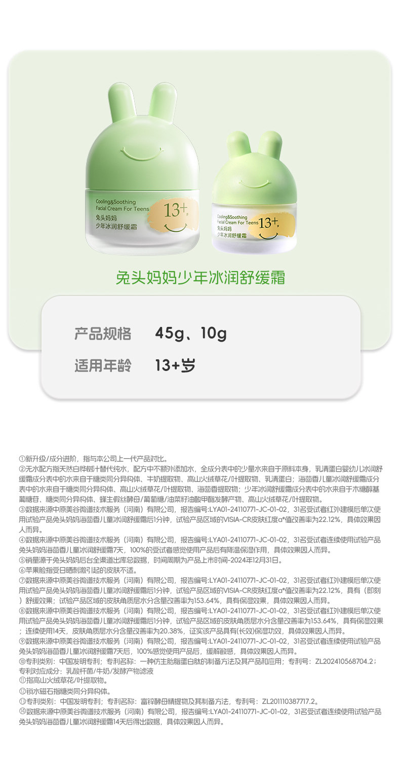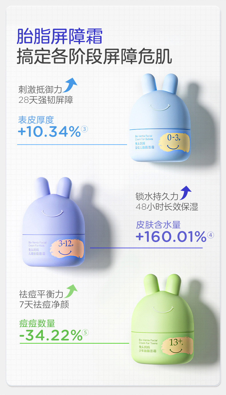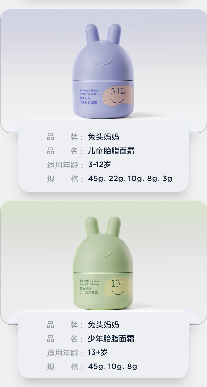 兔头妈妈、儿童面霜、分龄胎脂、春夏适用、保湿舒缓、滋润润肤
