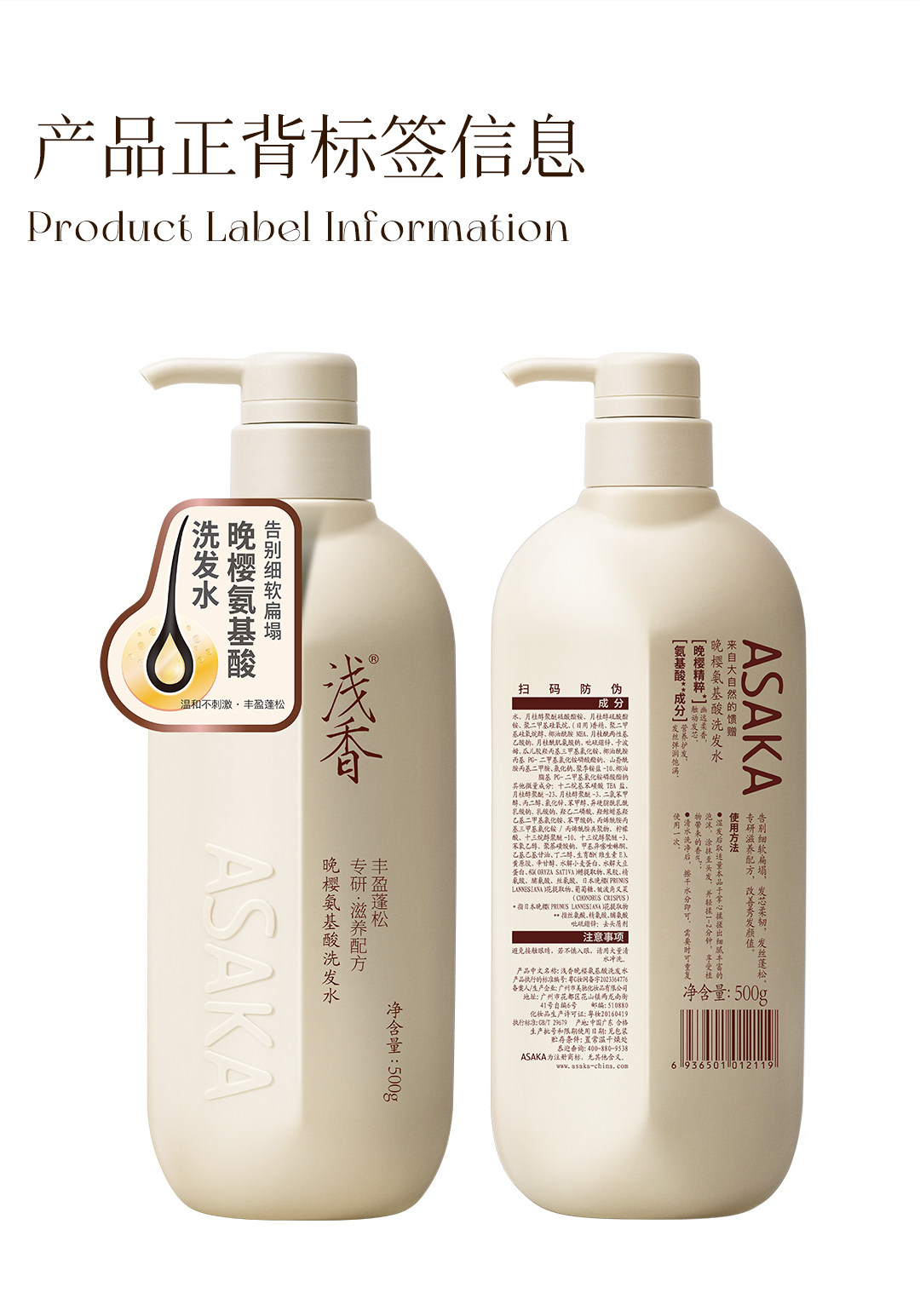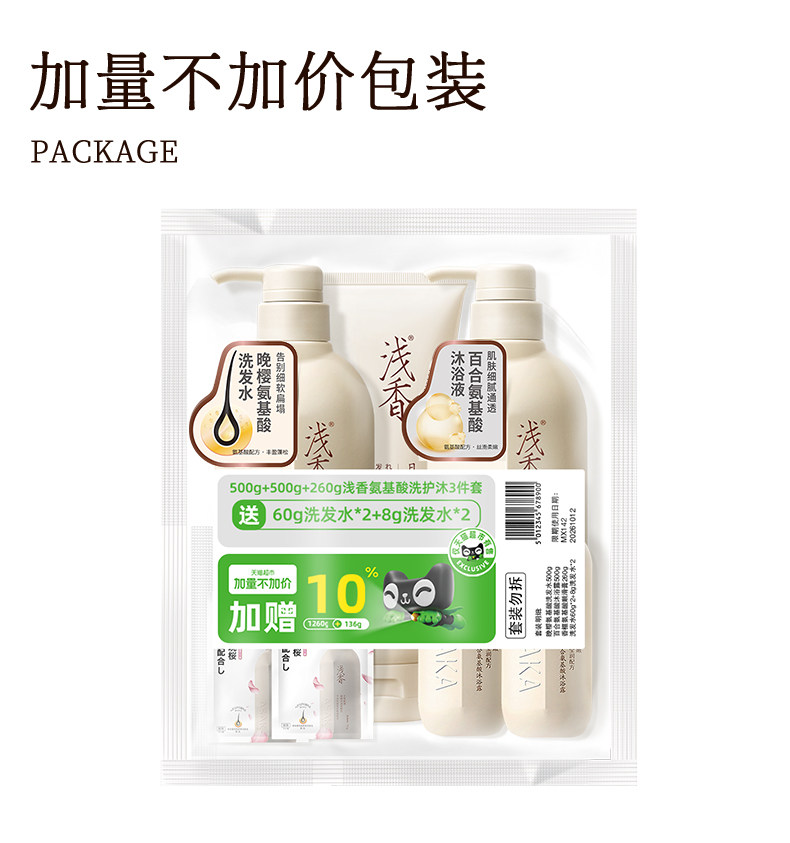 浅香、氨基酸洗护沐套装、洗发水、护发素、沐浴露、控油去屑