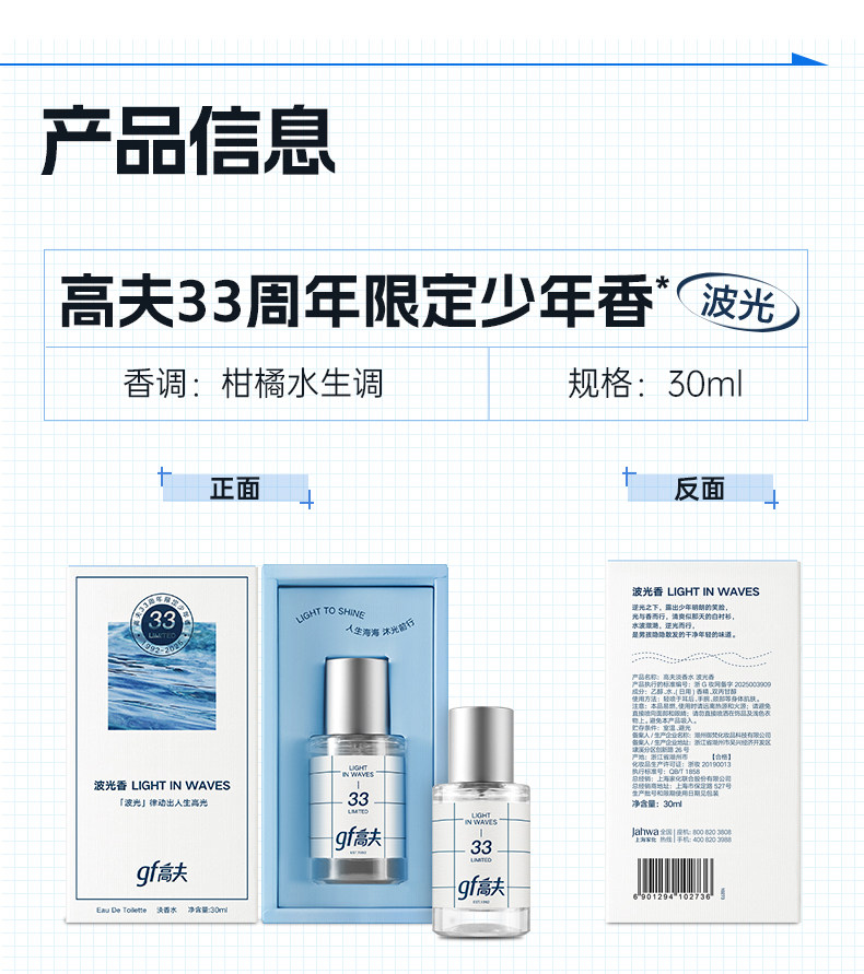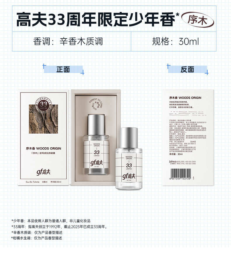 gf高夫、33周年限定、男士淡香水、木质柑橘芳香、持久留香