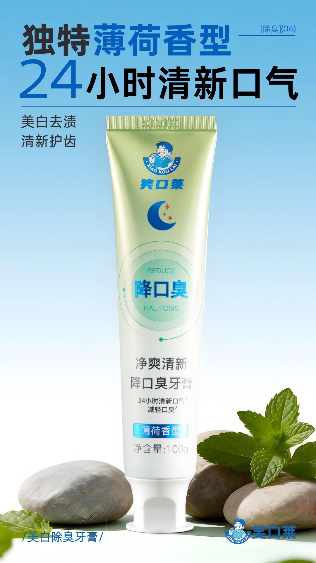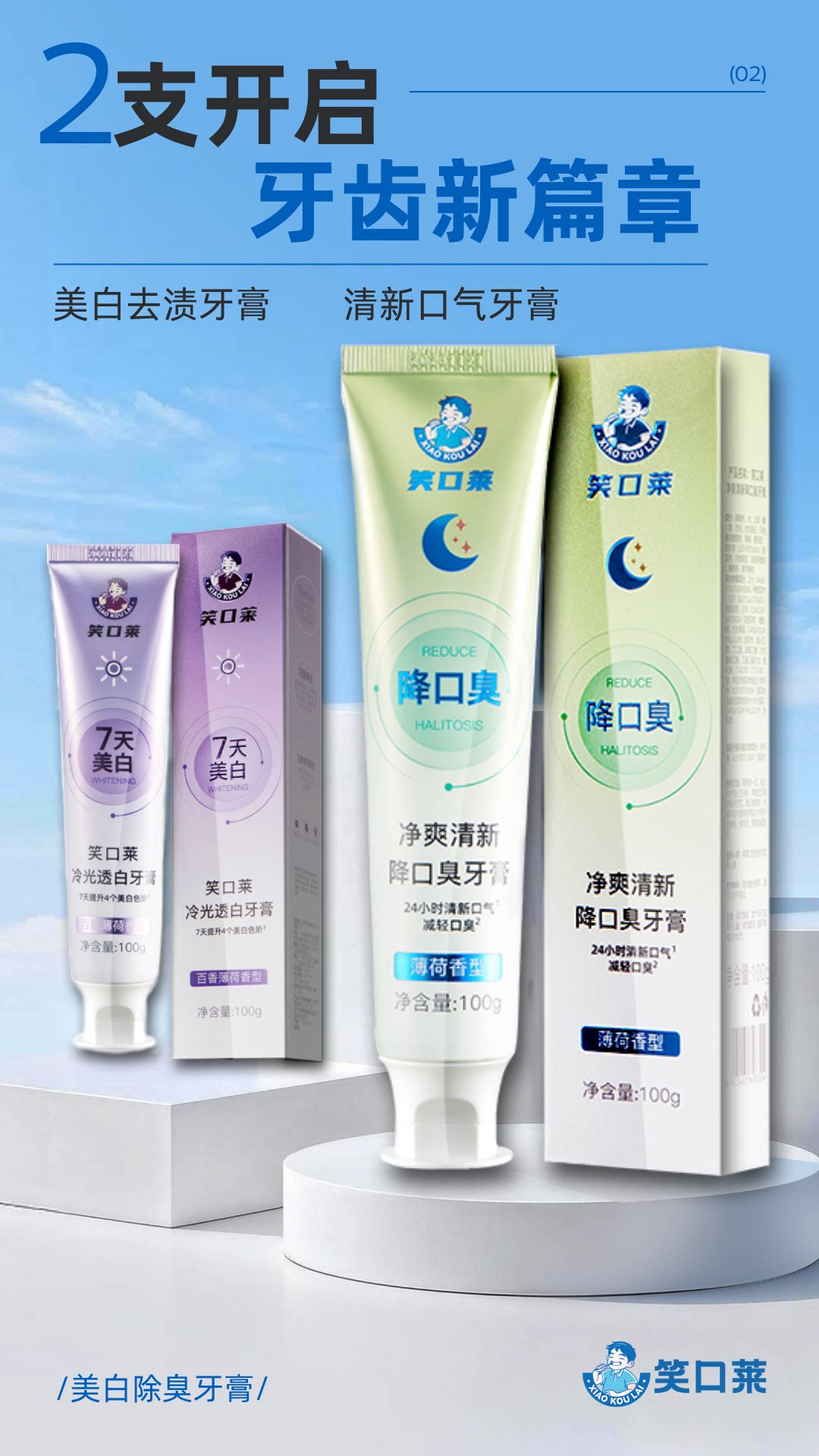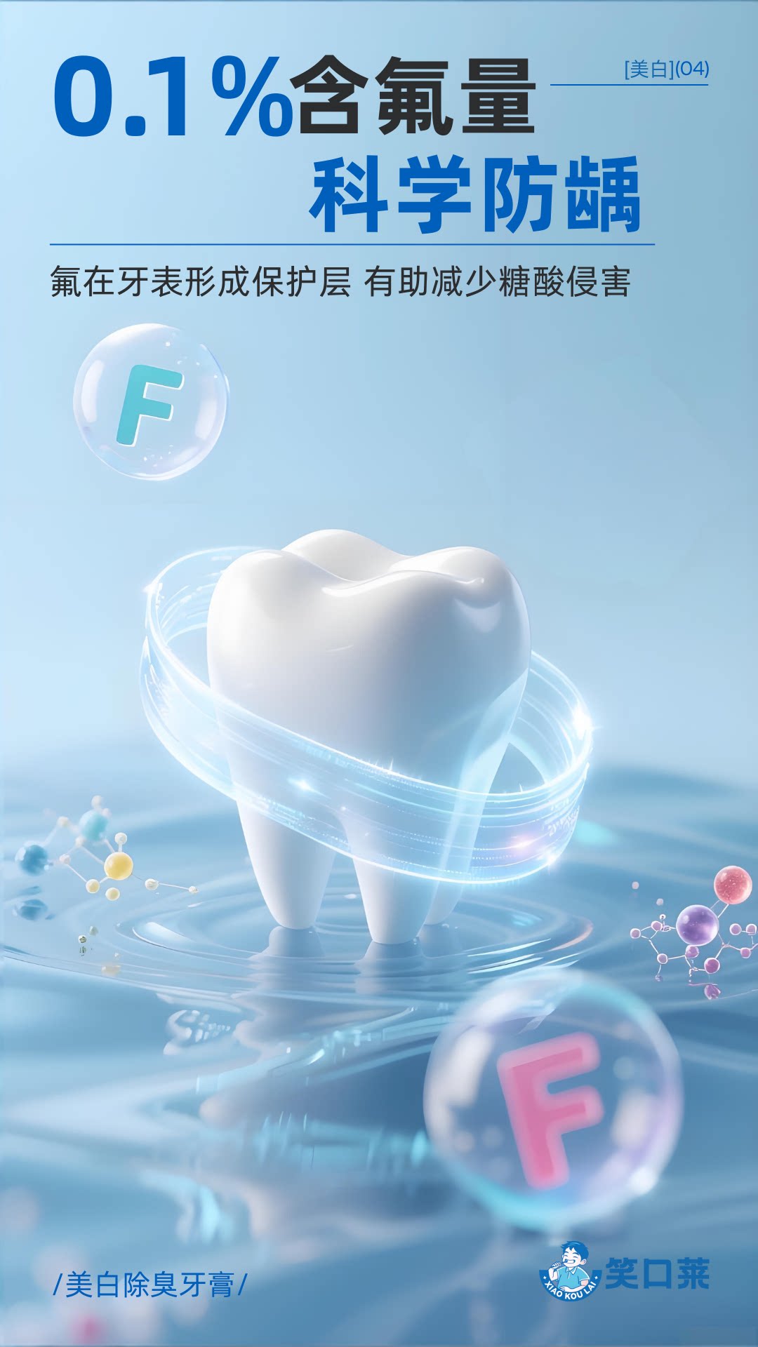 笑口莱、薄荷牙膏、防蛀、含氟、美白去口臭、日夜两用