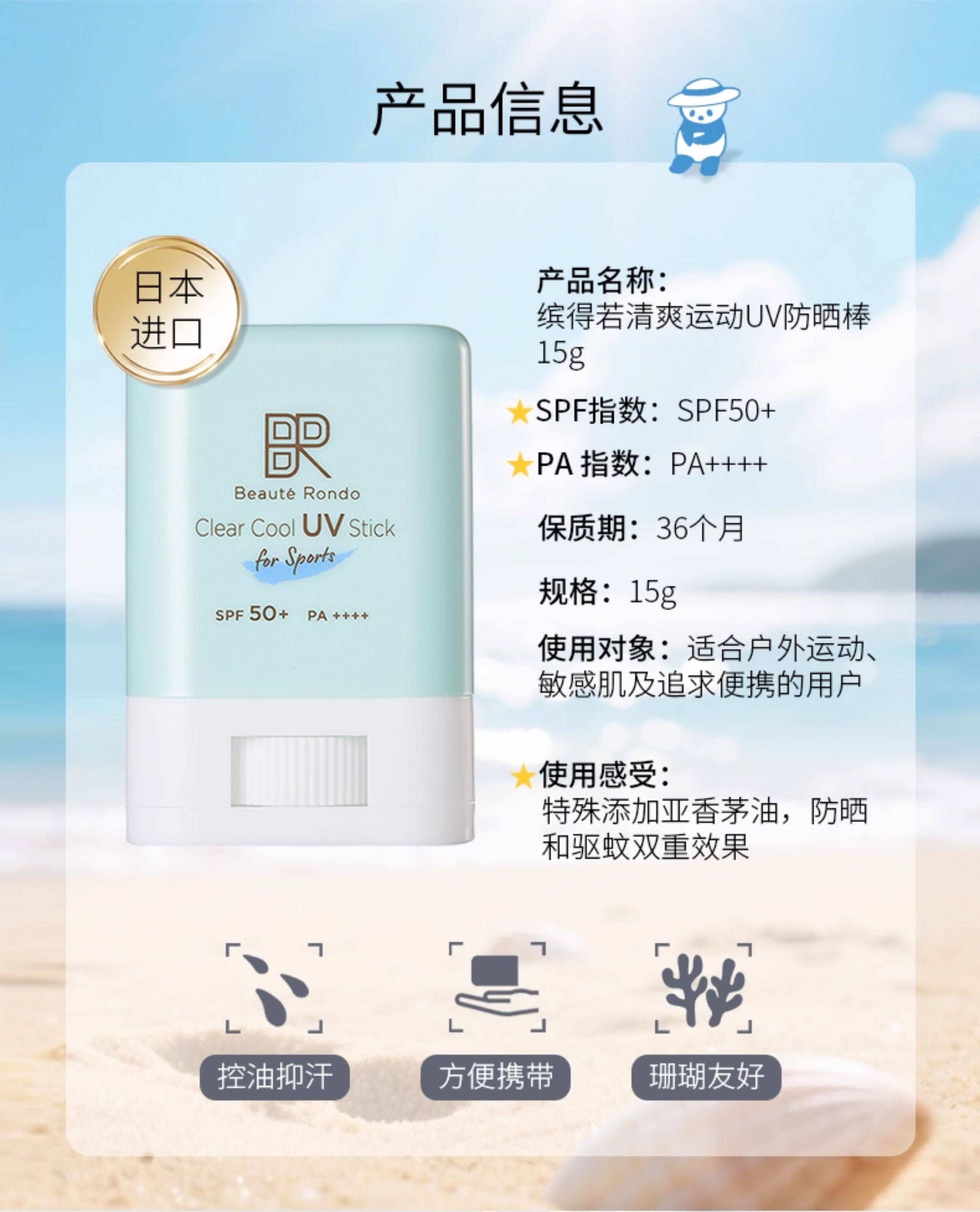 Beaute Rondo、缤得若防晒棒、控油、防水防汗、便携补涂、固体防晒霜、SPF50+
