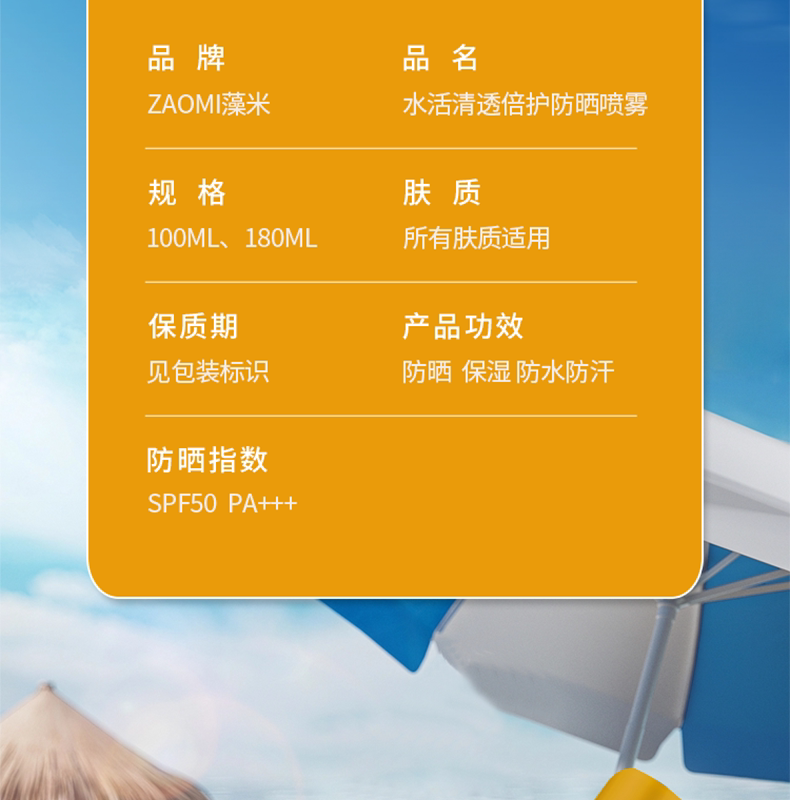 好物体验、藻米、水活清透、倍护防晒、喷雾、180ml