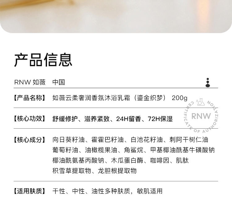 RNW/如薇、养肤沐浴露、温和清洁、保湿水润、滋养肌肤
