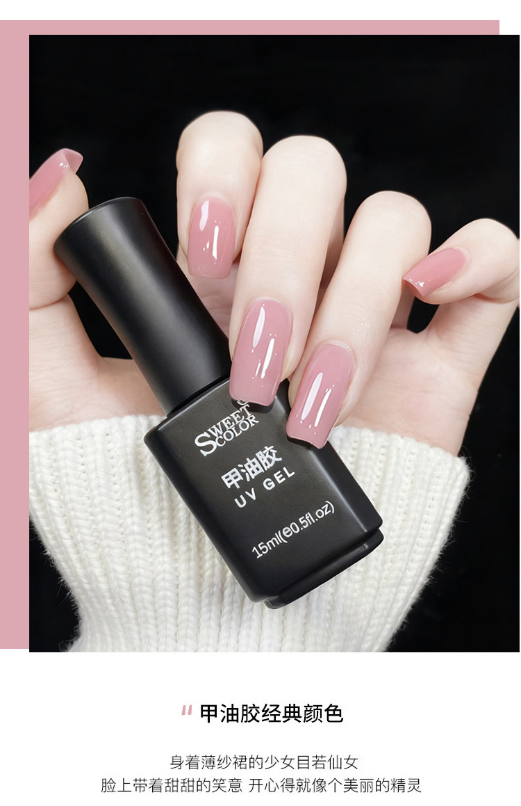 sweet color懒人三合一甲油胶裸粉色指甲油一步胶猫眼持久裸色