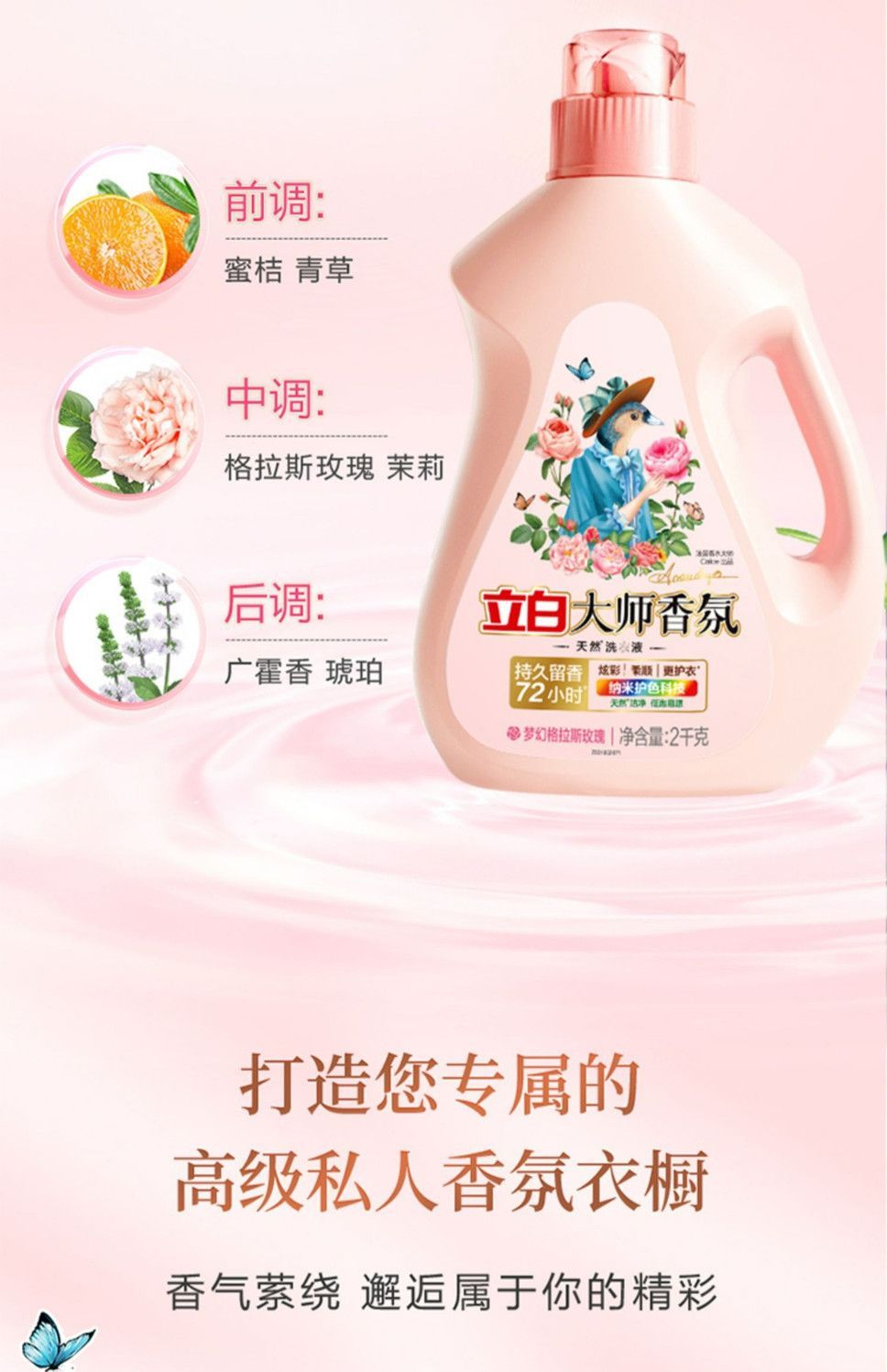 立白、香氛大师洗衣液、持久留香、72小时、家用、瓶装组合装、去污