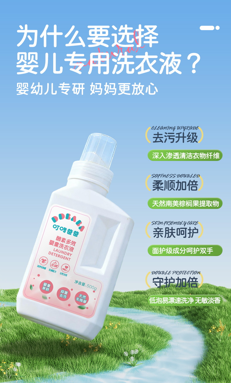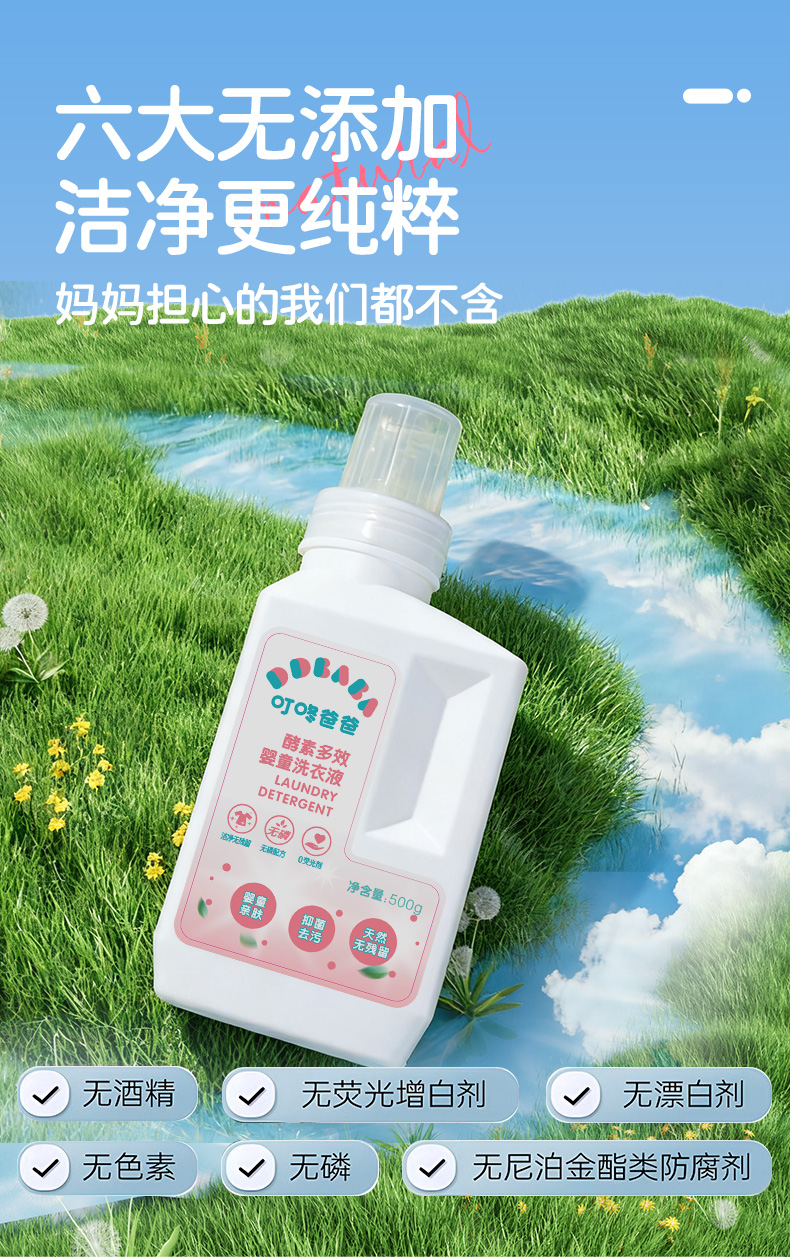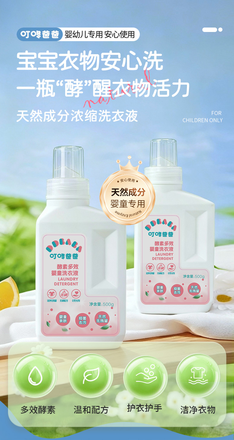 叮咚爸爸、婴童洗衣液、抑菌、去污、多效、衣物清洁剂、植物清香