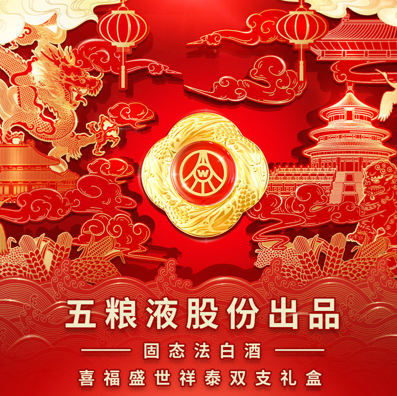 宜宾五粮液股份出品喜福盛世祥泰礼盒52度浓香型高度白酒500ml*2