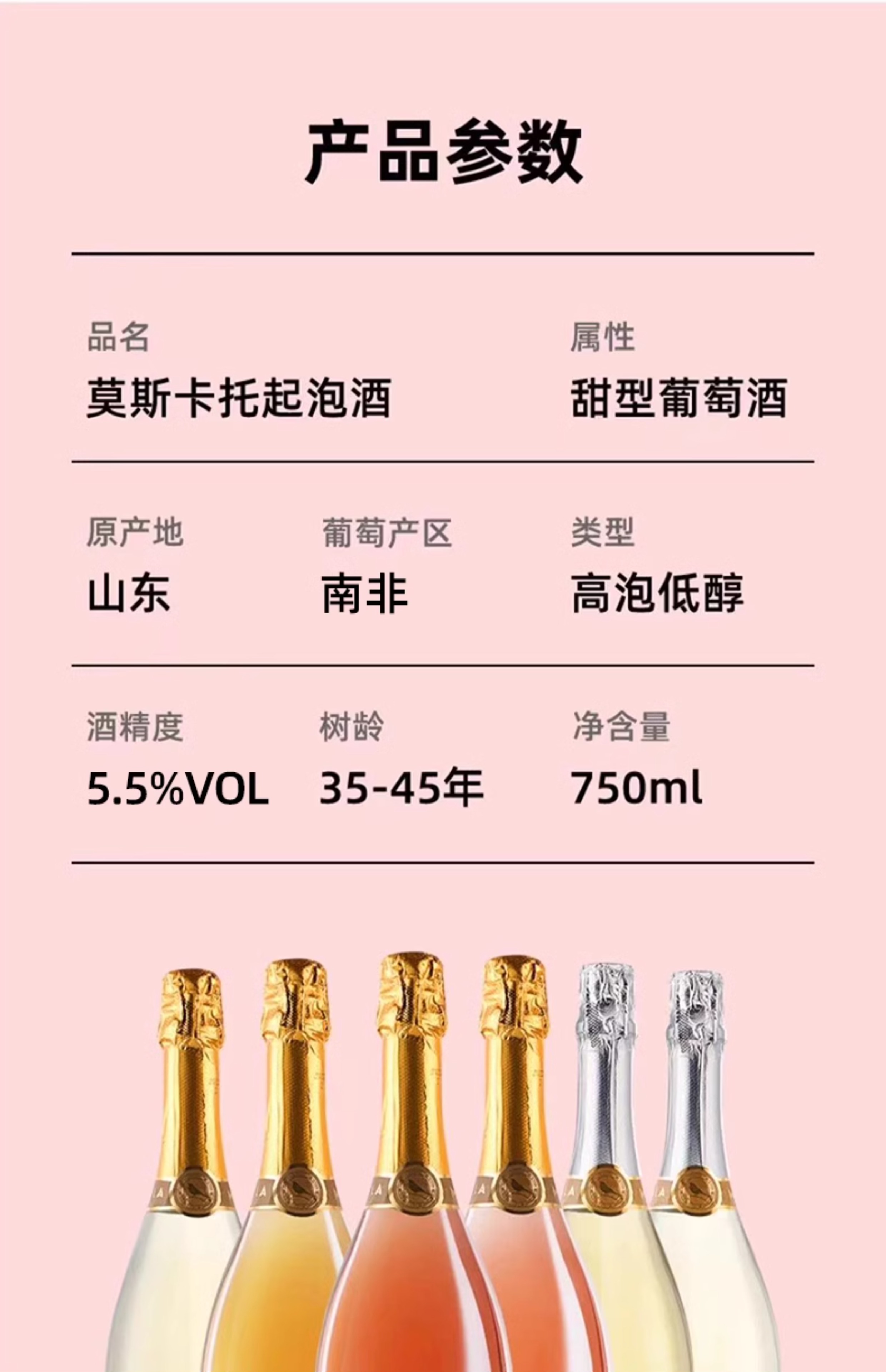 莫斯卡托白葡萄起泡酒少女鸡尾红酒赠酒杯气泡酒