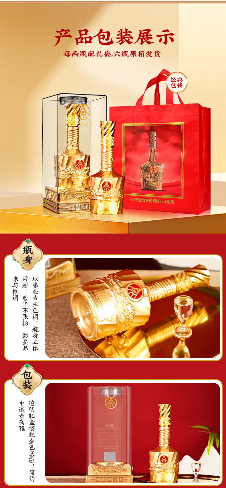 五粮液股份、新礼金水晶、52度、浓香型白酒、双瓶装、马年礼酒、含礼袋