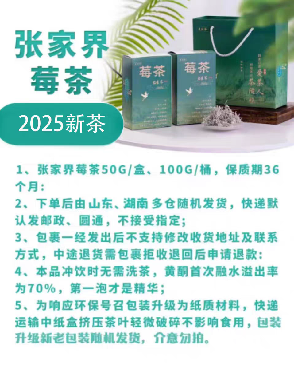 莓茶张家界莓茶正品正宗龙须芽尖长寿村土家藤茶50g/盒