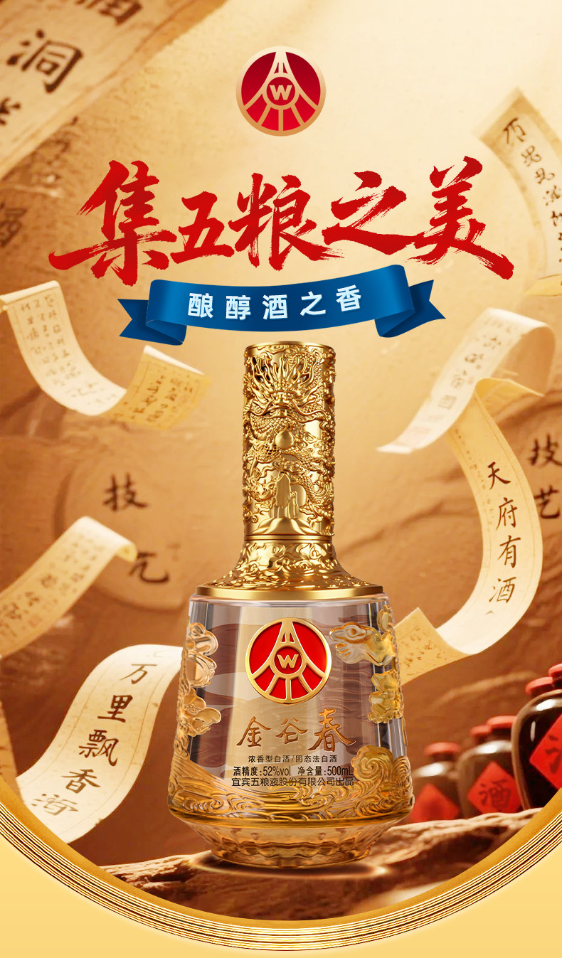 五粮液集团出品 金谷春 52度浓香型白酒 年货礼酒【含礼袋】