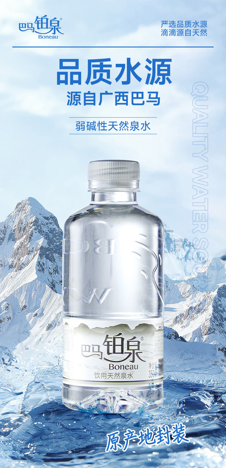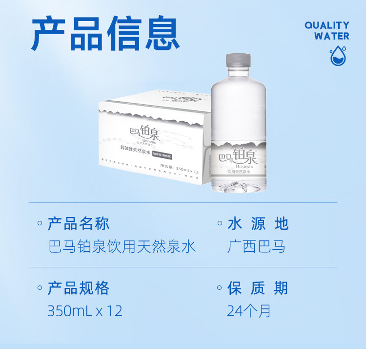 巴马铂泉 天然弱碱性 饮用水 350ml 12瓶/箱 铂金瓶装 地下泉水