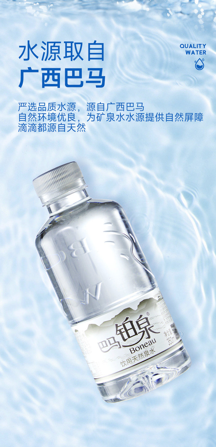 巴马铂泉天然弱碱性饮用水350ml*12瓶/箱铂金瓶装含矿质地下泉水