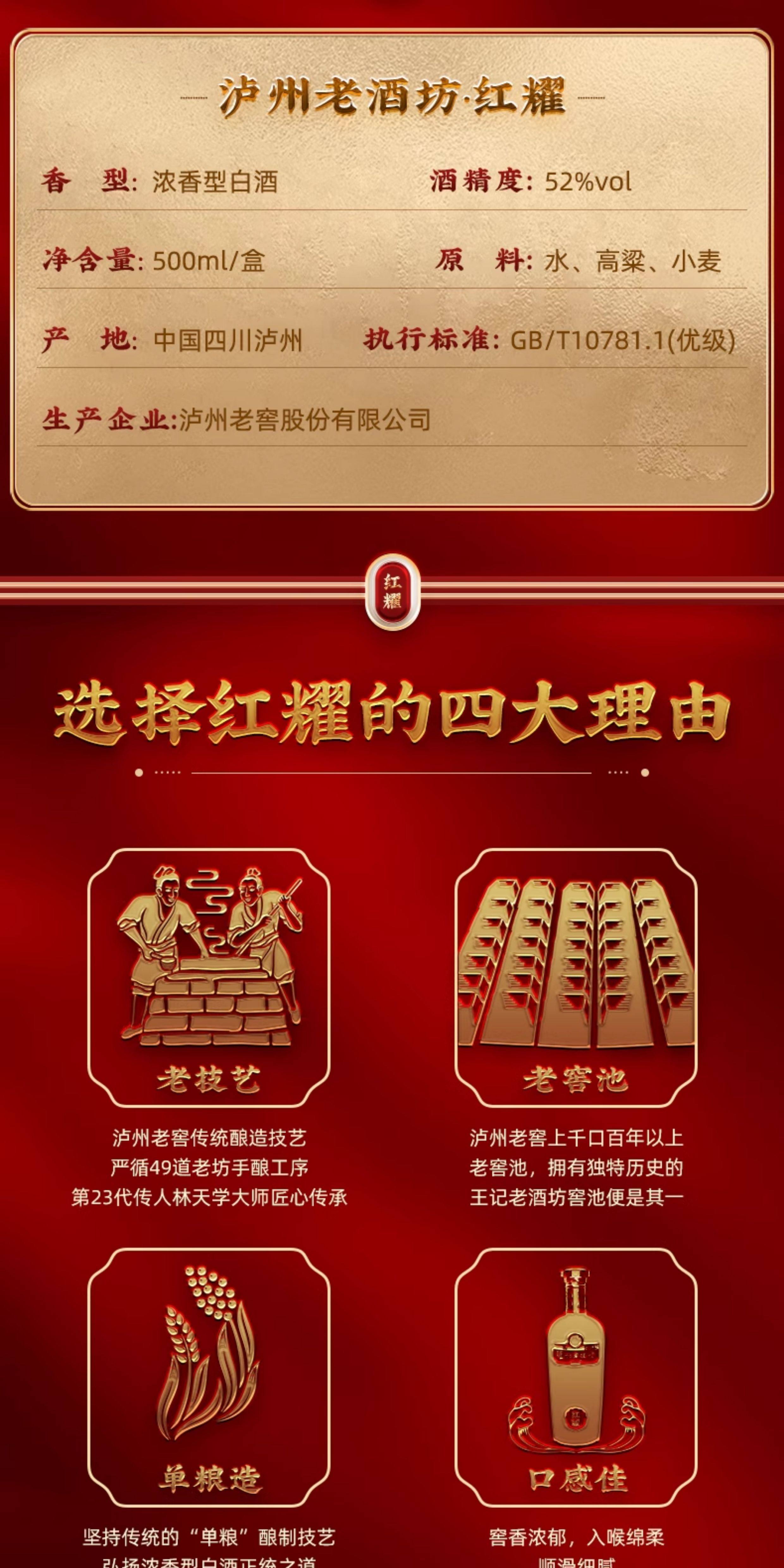不打烊-泸州老酒坊红耀52度500ml*2瓶浓香型白酒过年宴请喜酒礼盒