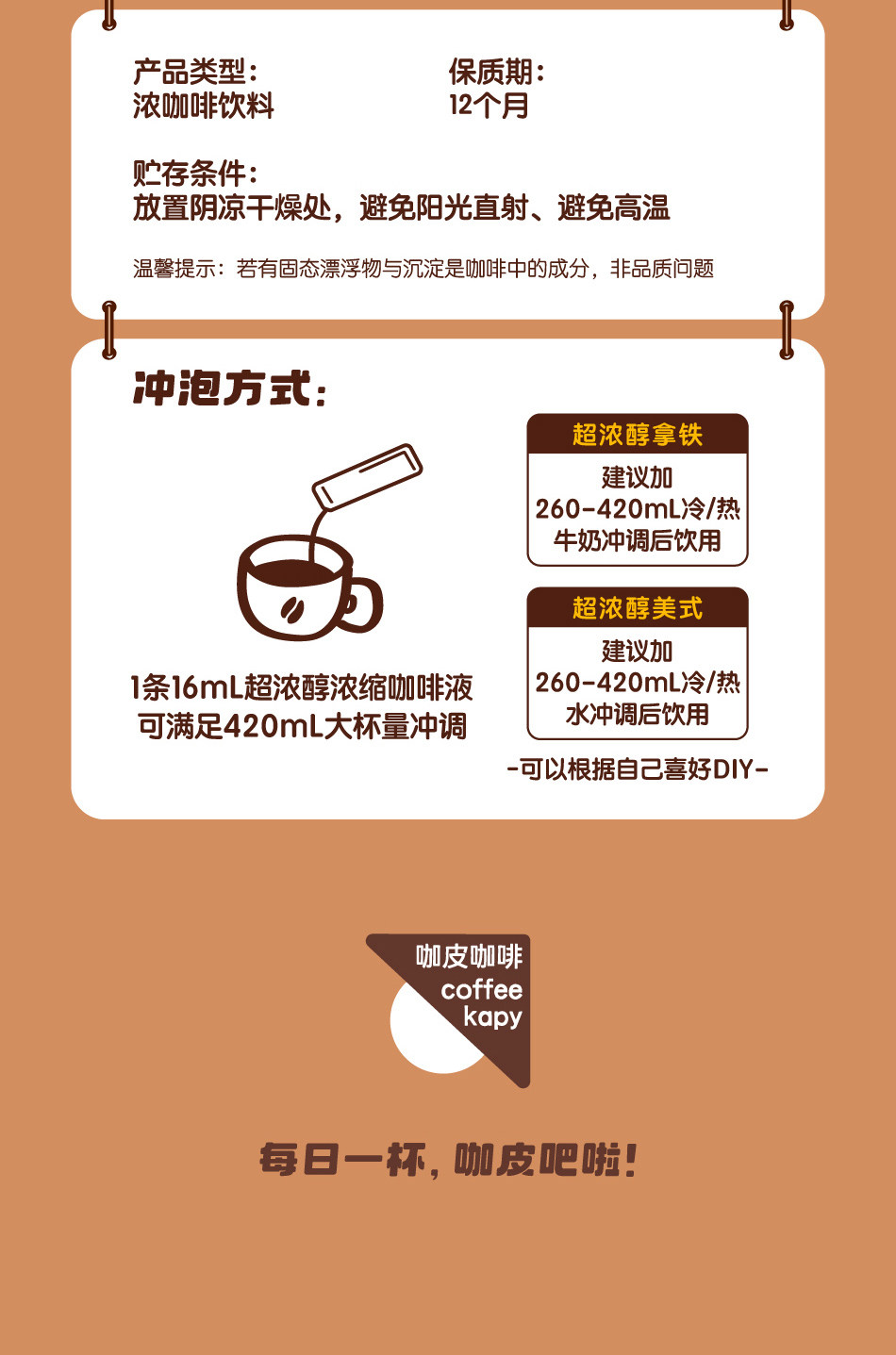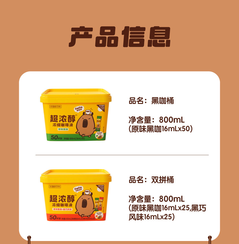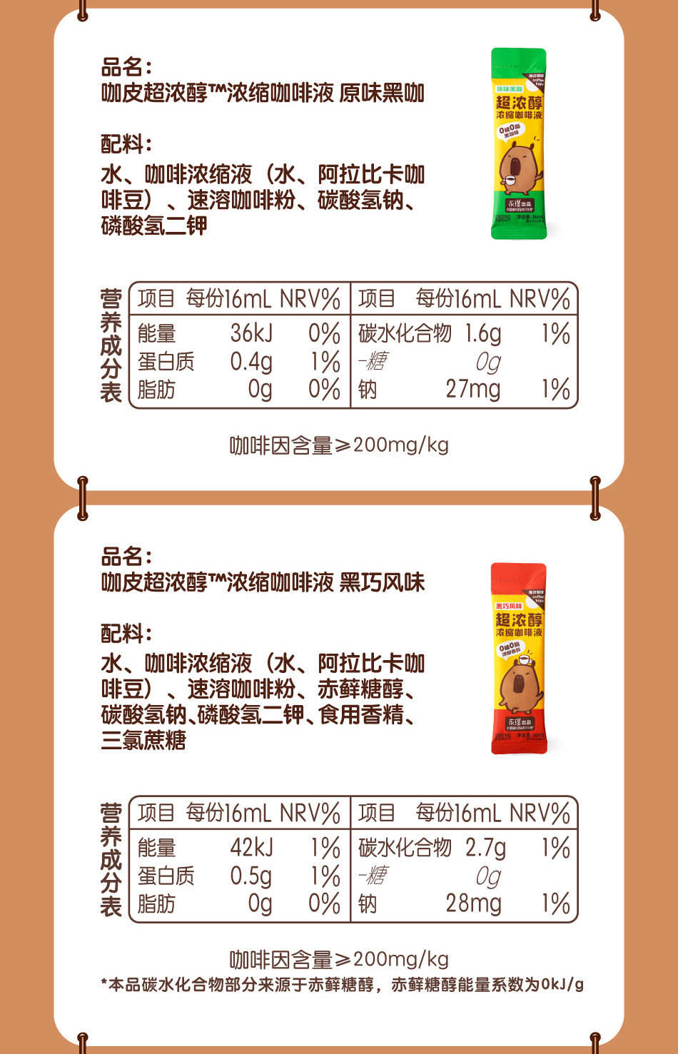 咖皮超浓醇 浓缩咖啡液 0糖0脂 速溶便携 黑咖 黑巧美式拿铁 16ml*50杯