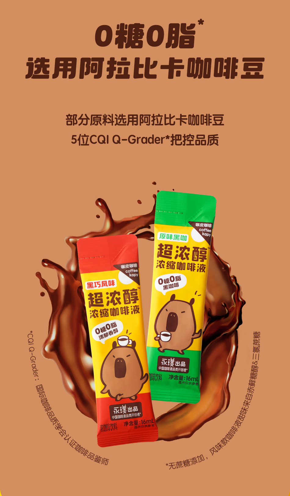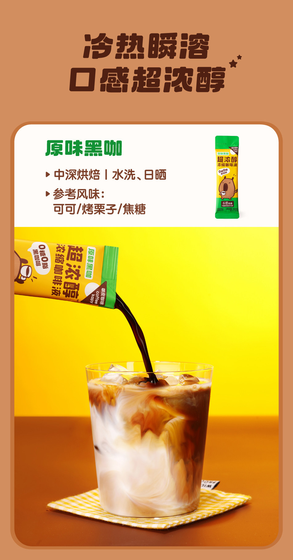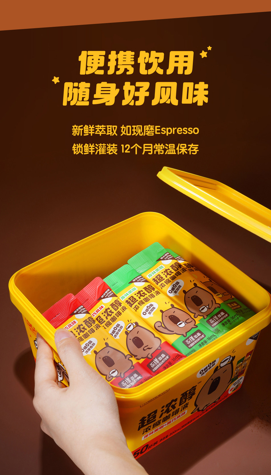 咖皮超浓醇 浓缩咖啡液 0糖0脂 速溶便携 黑咖 黑巧美式拿铁 16ml*50杯