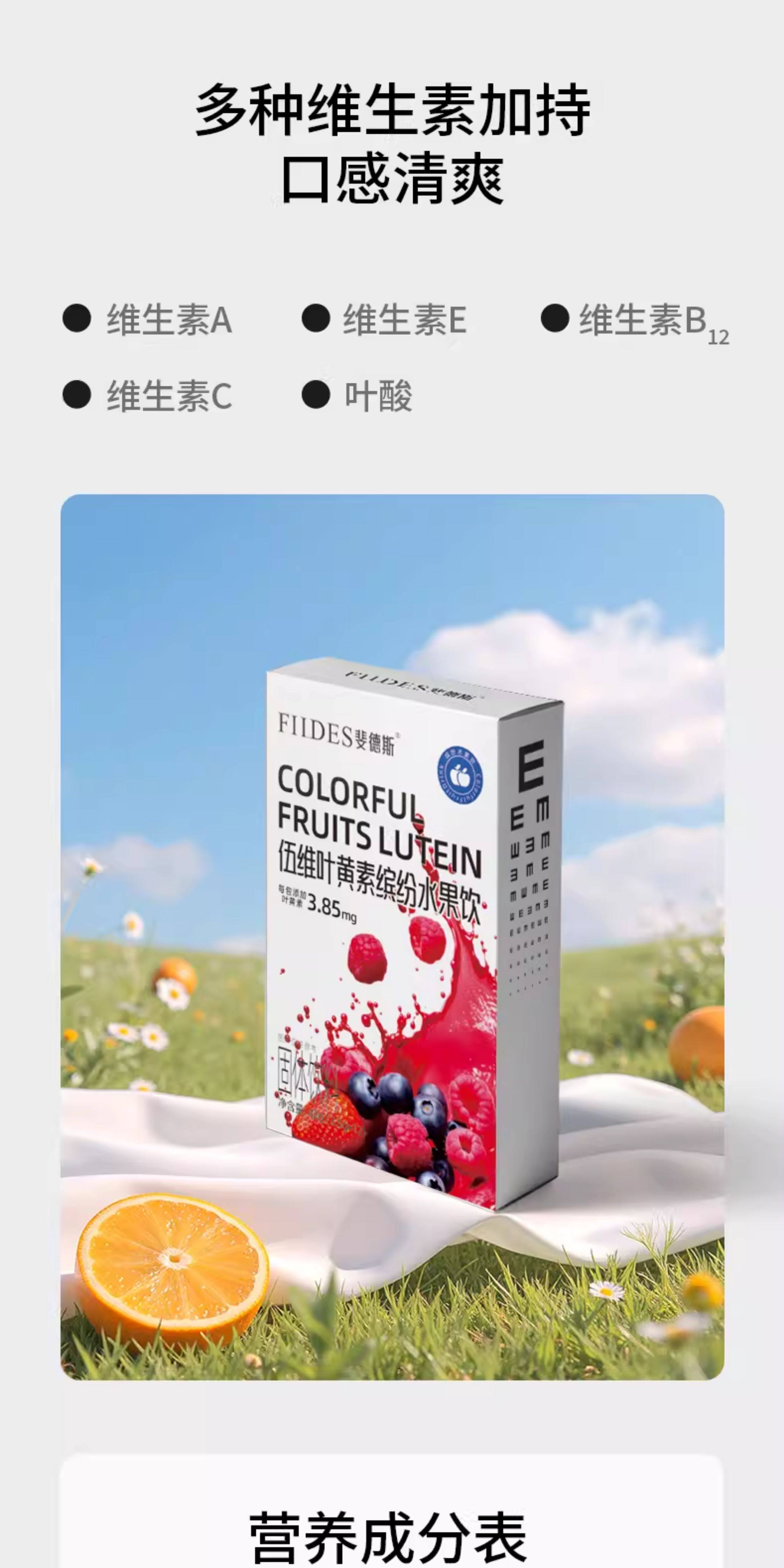 FIIDES伍维、叶黄素果饮、茶饮咖啡饮、儿童少年、爱眼亮眼、中老年成人专用