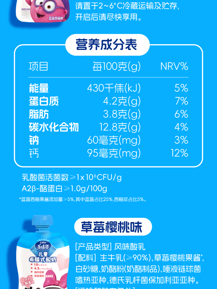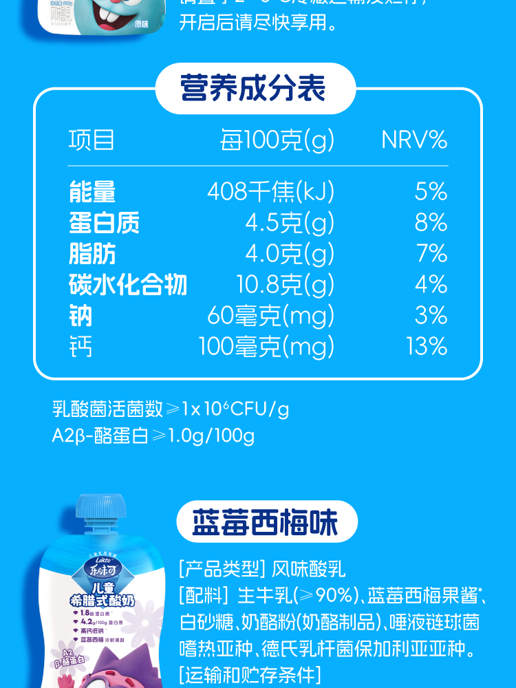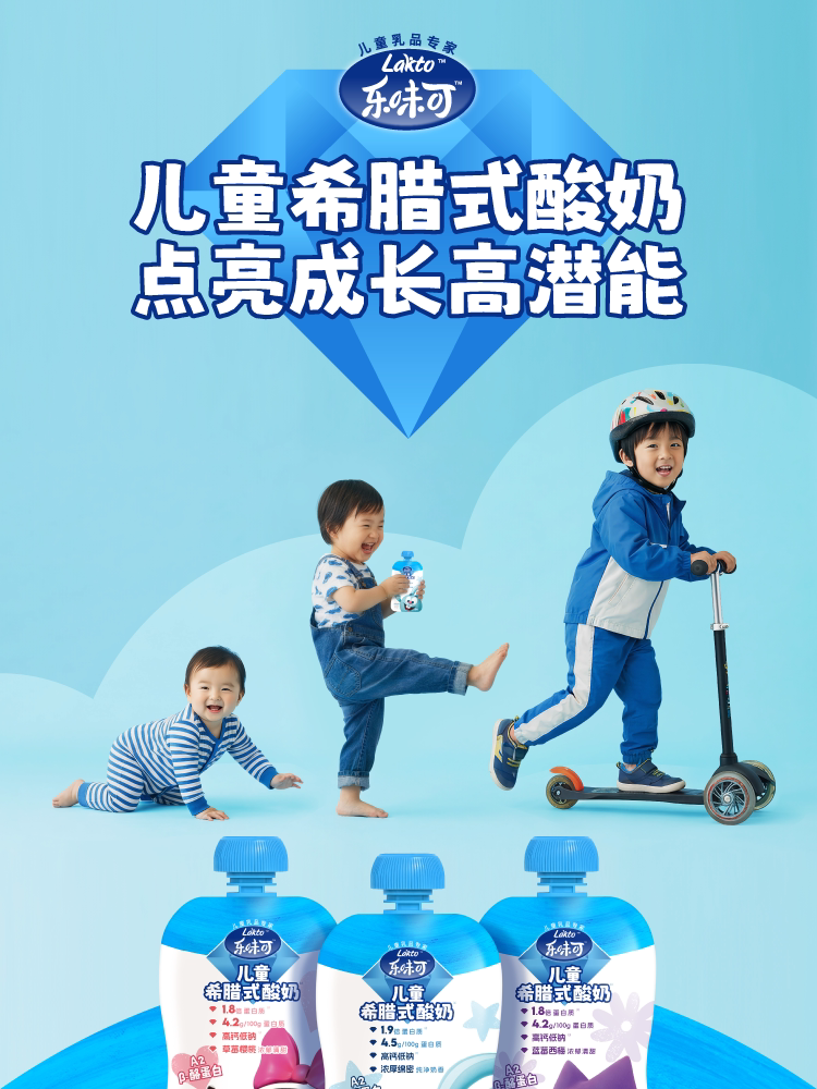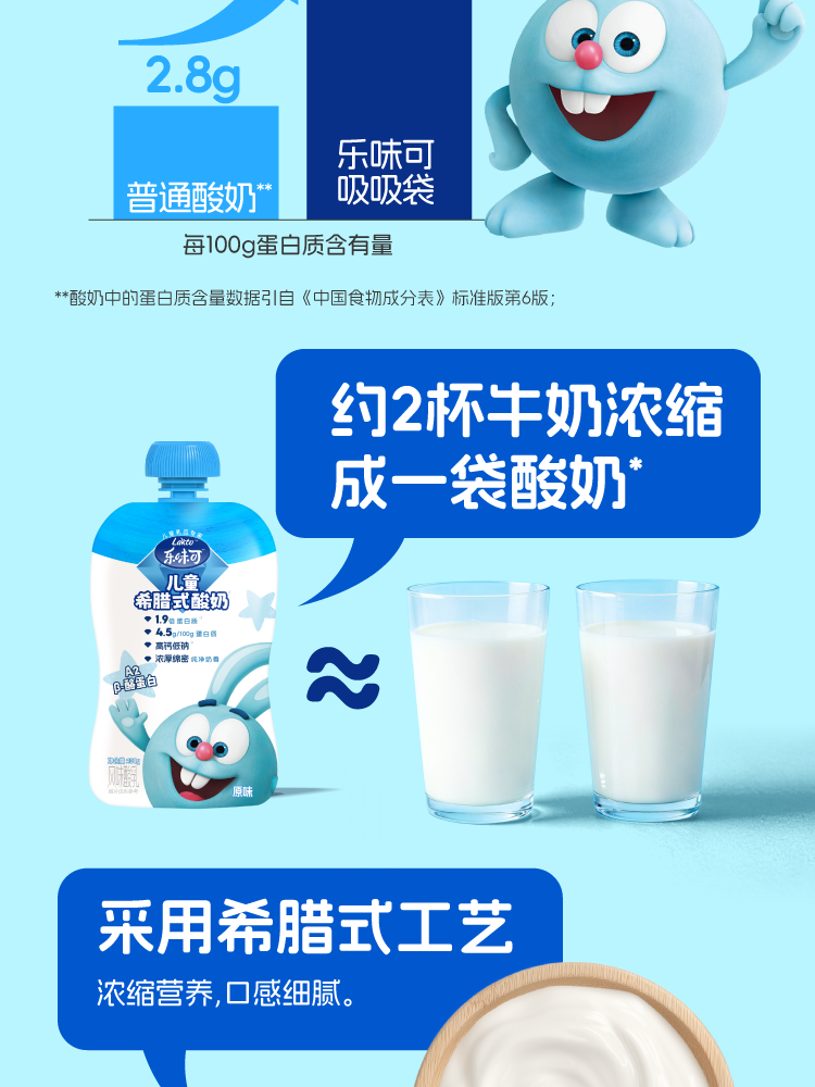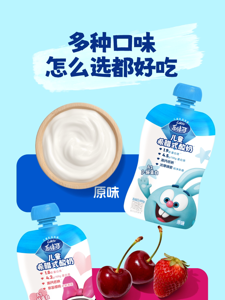 lakto乐味可、儿童希腊酸奶、4.5g蛋白、低温酸奶、8袋/盒、营养丰富