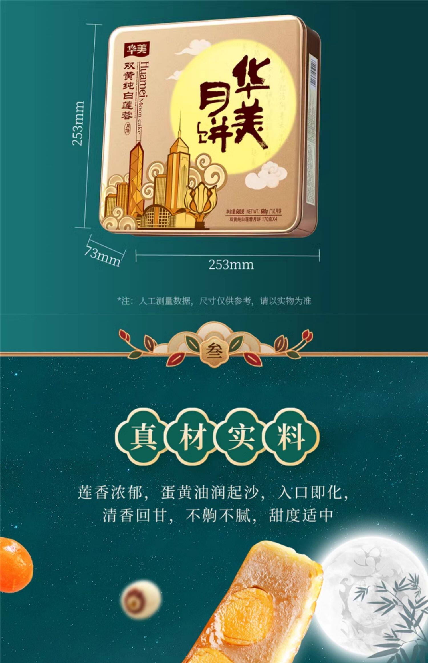 华美月饼 双黄纯白莲蓉月饼 礼盒装 广式 蛋黄月饼 中秋 送礼 团购