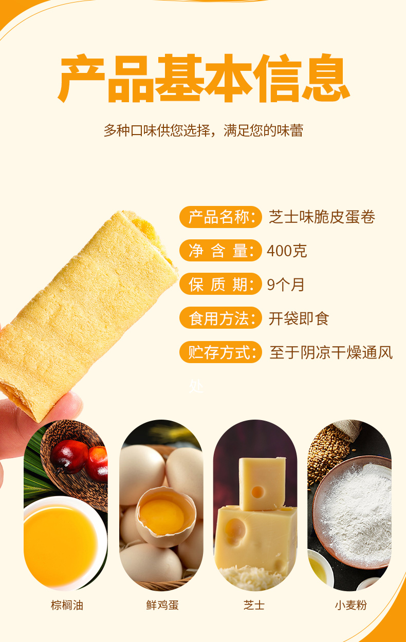 芝士蛋卷味 脆皮蛋卷 流心蛋酥 独立小包装 夹心 休闲零食 蛋黄酥