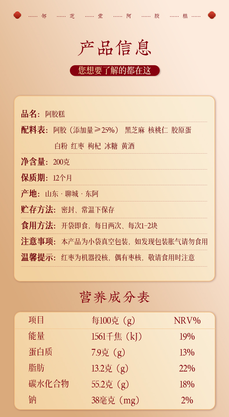 官方旗舰店正品山东东阿阿胶糕女性营养品女性气血I