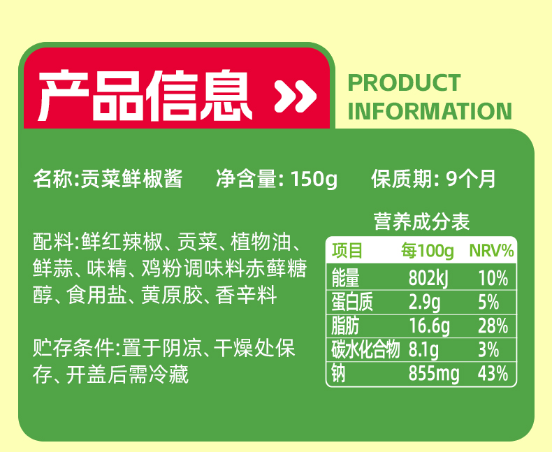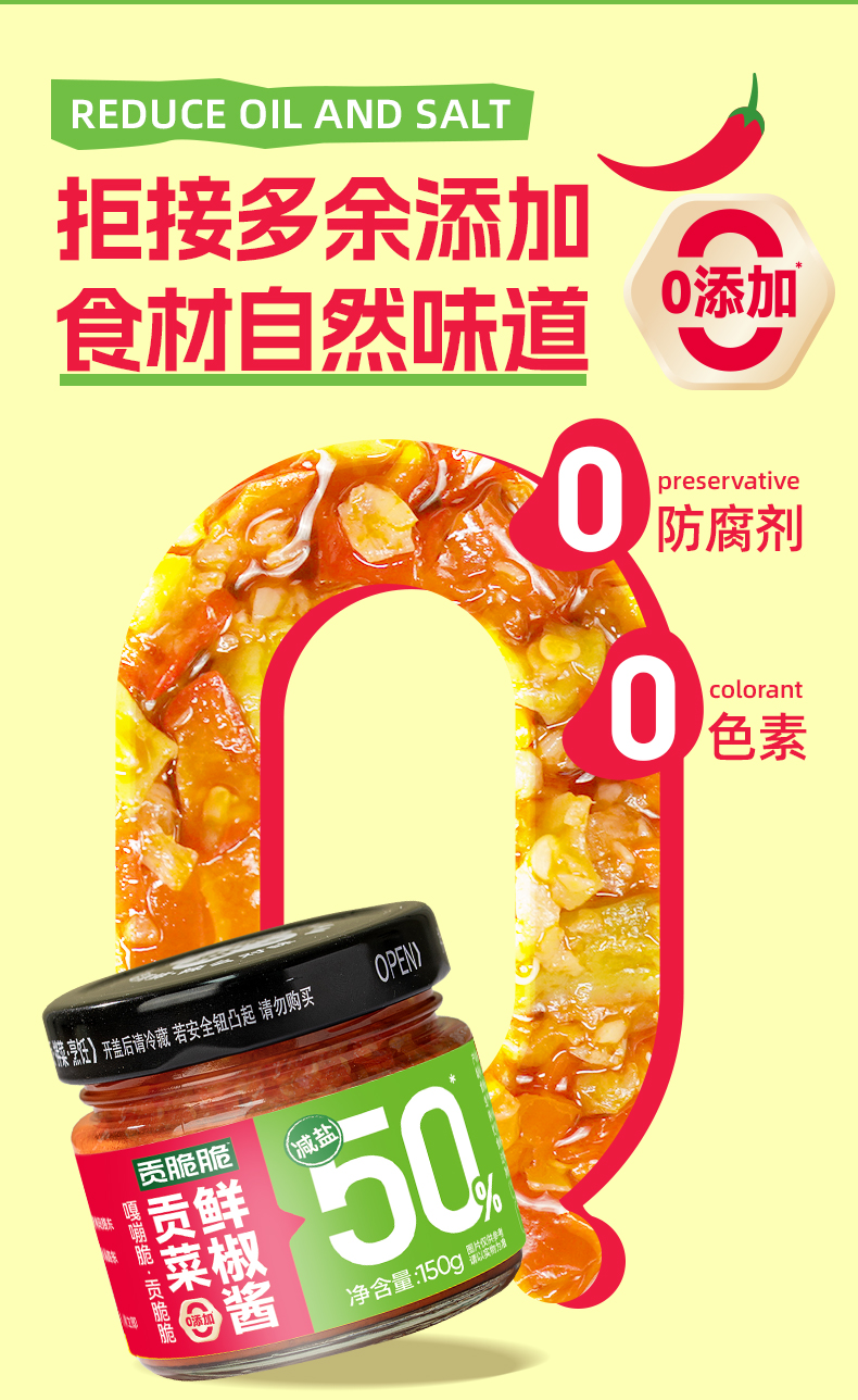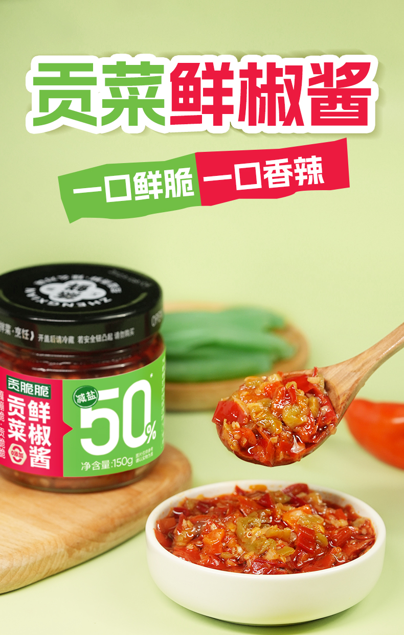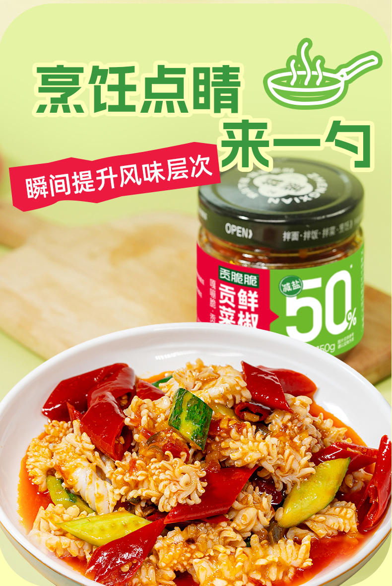 贡脆脆 贡菜鲜椒酱 下饭辣椒酱 剁椒鲜椒酱 拌面酱 拌饭酱 调味辣酱