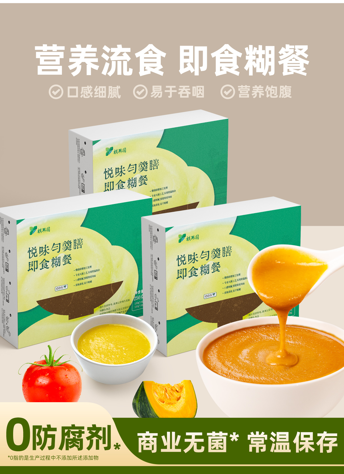 祺兴园、膳食纤维、易吸收、米糊、营养饱腹、代餐速食、免煮流食