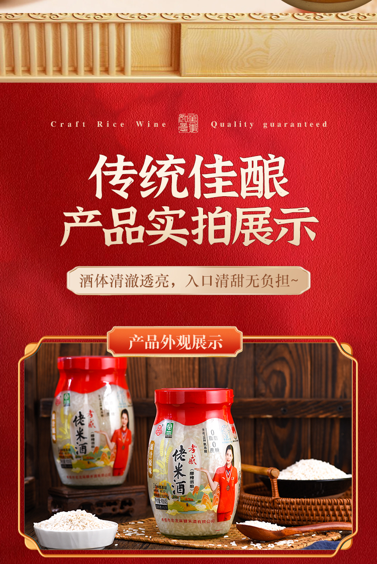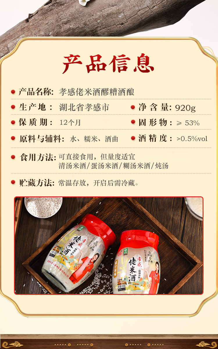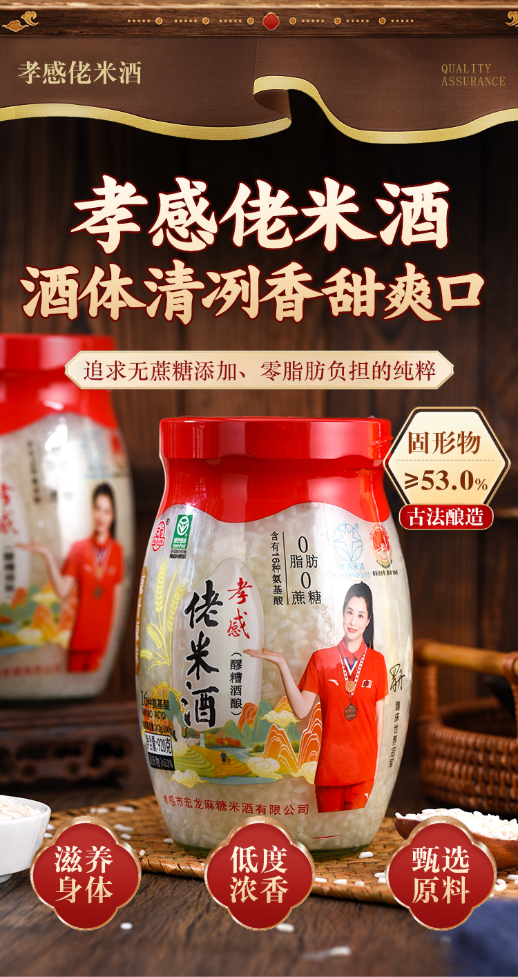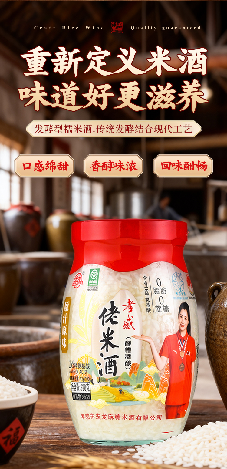 宏龙、孝感米酒、官方旗舰店、纯糯米酒酿、醪糟甜酒、早餐月子、920g
