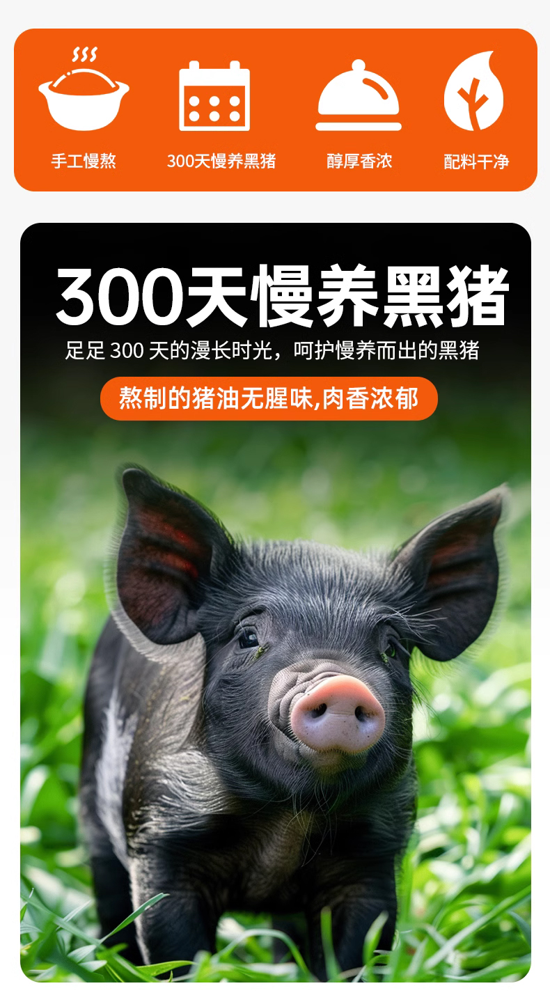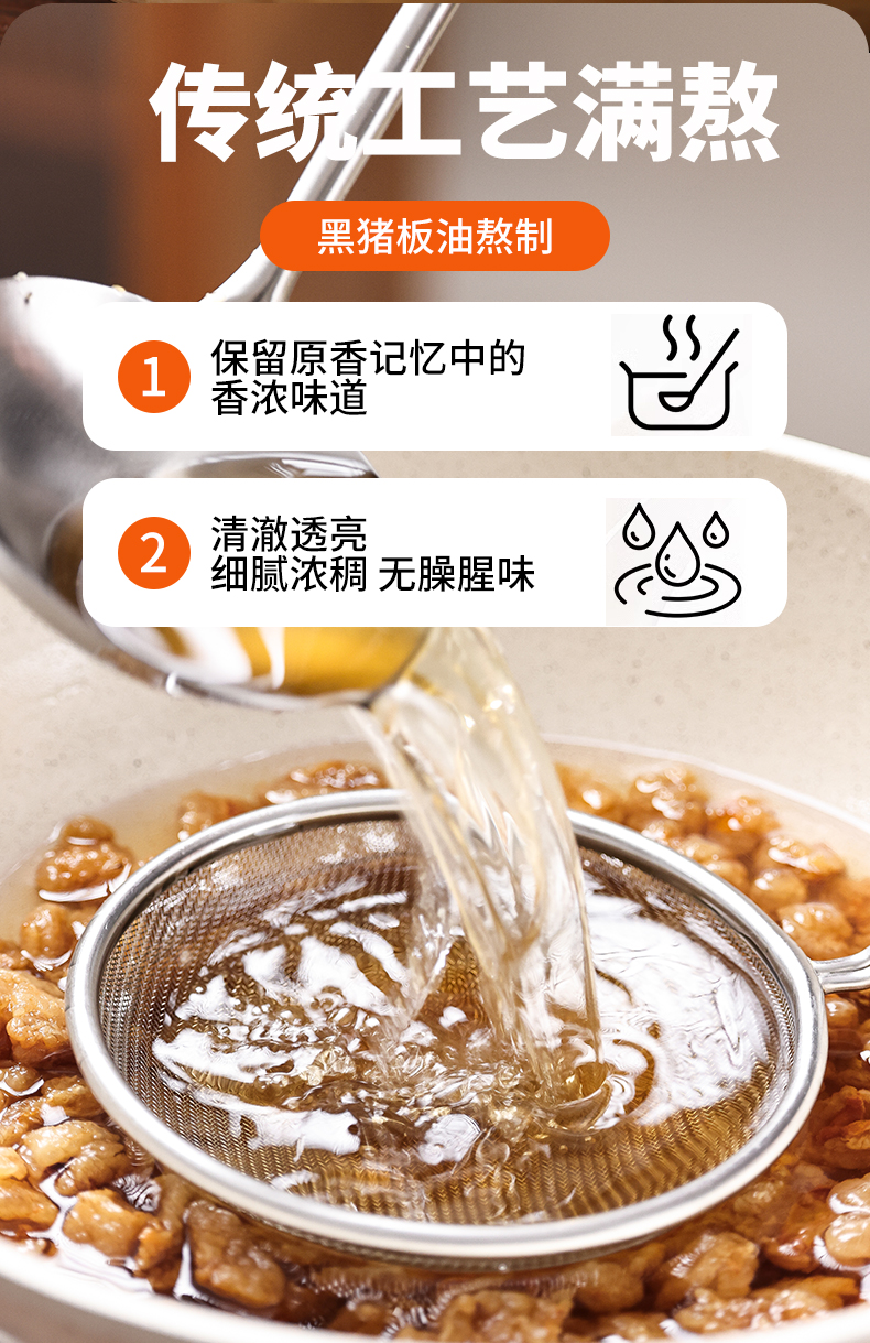 尝梦黑猪油、家用、食用油、拌粉拌饭、烘焙起酥、动物油膏、荤油板油