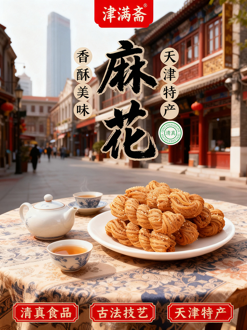 津满斋、天津麻花、特产、老式手工、夹馅清真、糕点伴手礼、零食