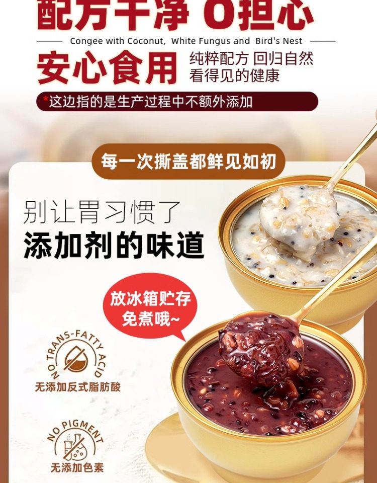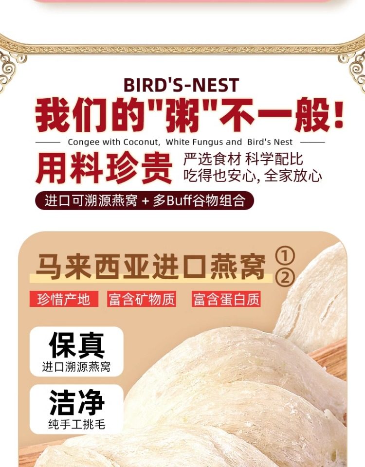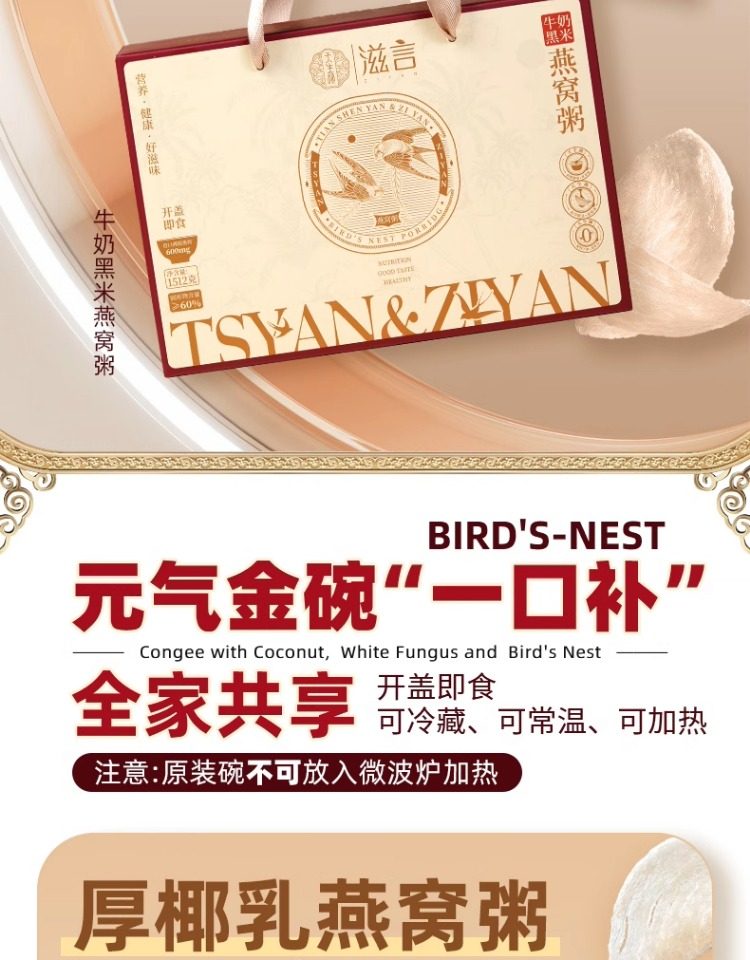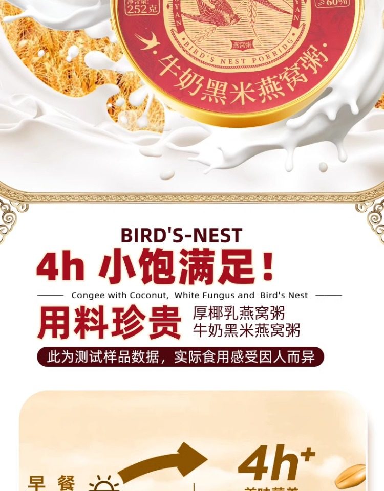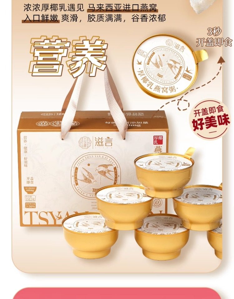 【头部推荐】天生颜252g金装大碗厚椰乳牛奶黑米燕窝粥600mg免煮