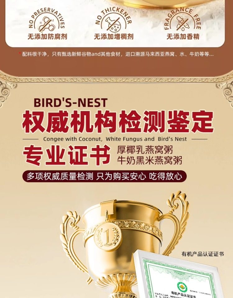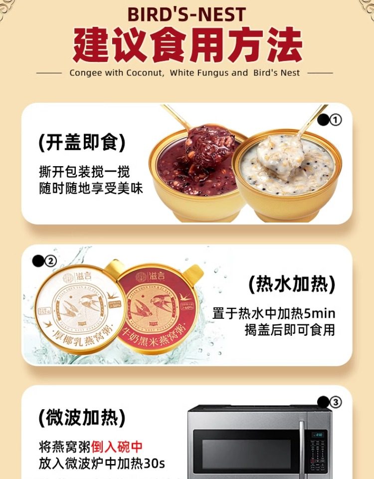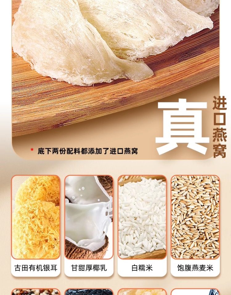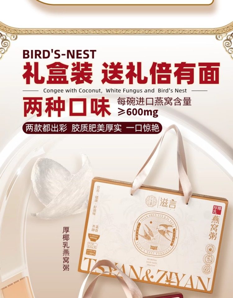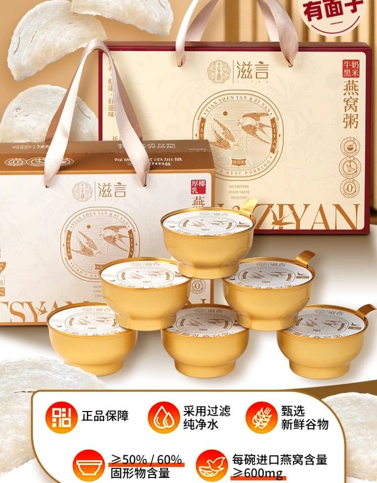 【头部推荐】天生颜252g金装大碗厚椰乳牛奶黑米燕窝粥600mg免煮