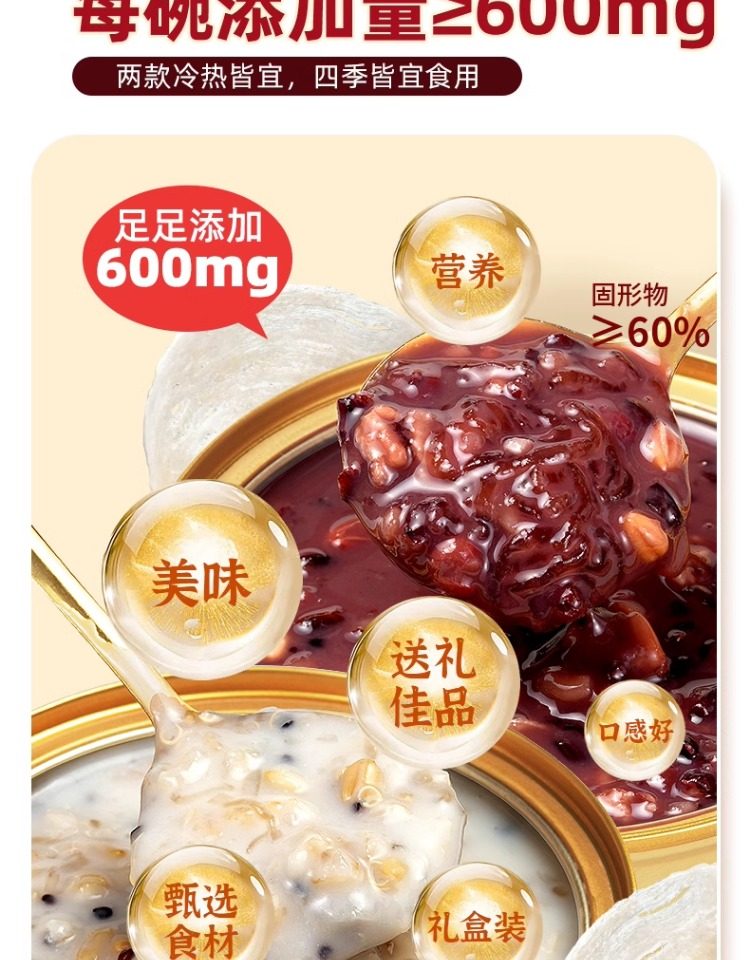 头部推荐 天生颜 厚椰乳 牛奶黑米燕窝粥 600mg 免煮 252g金装大碗