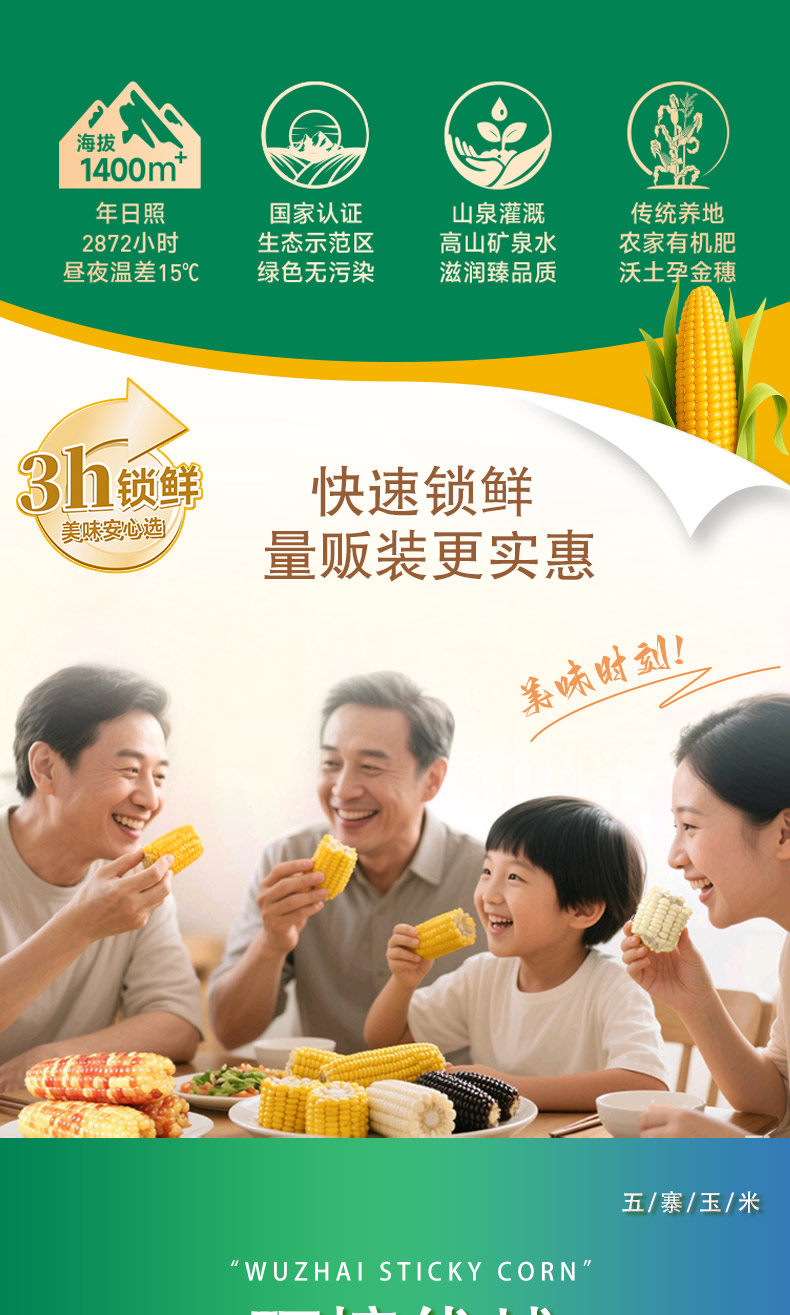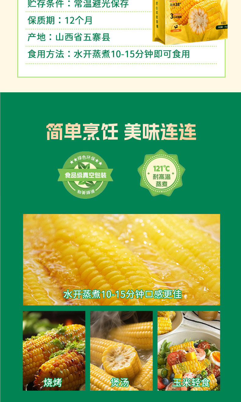 五寨黄糯玉米段、真空包装、低脂早餐、非转基因、25年新、国企品质