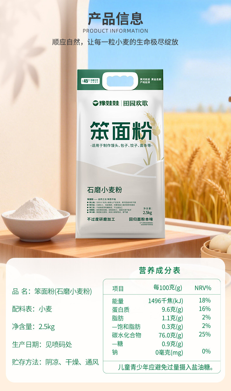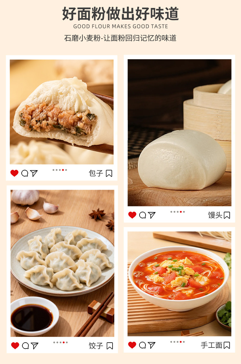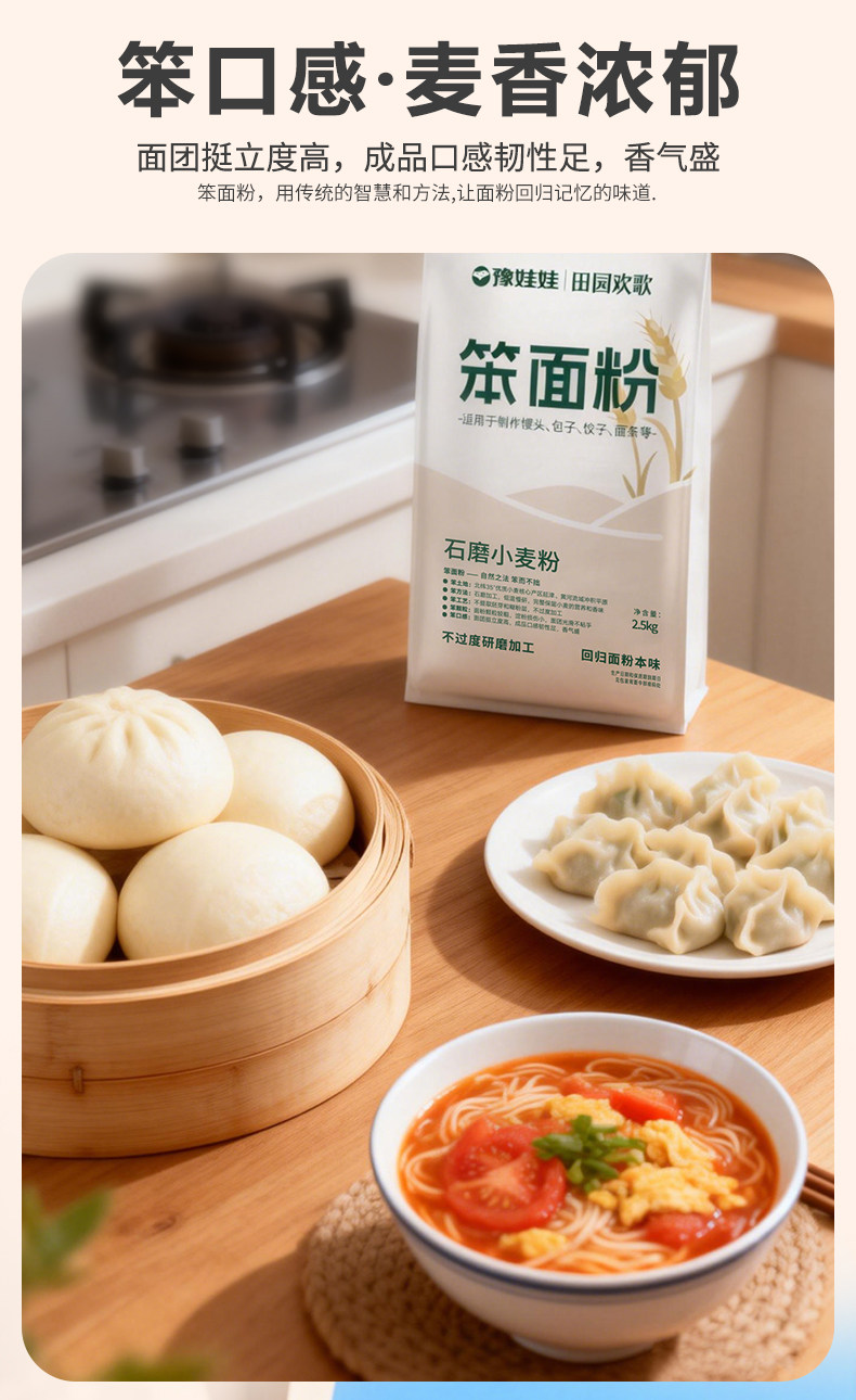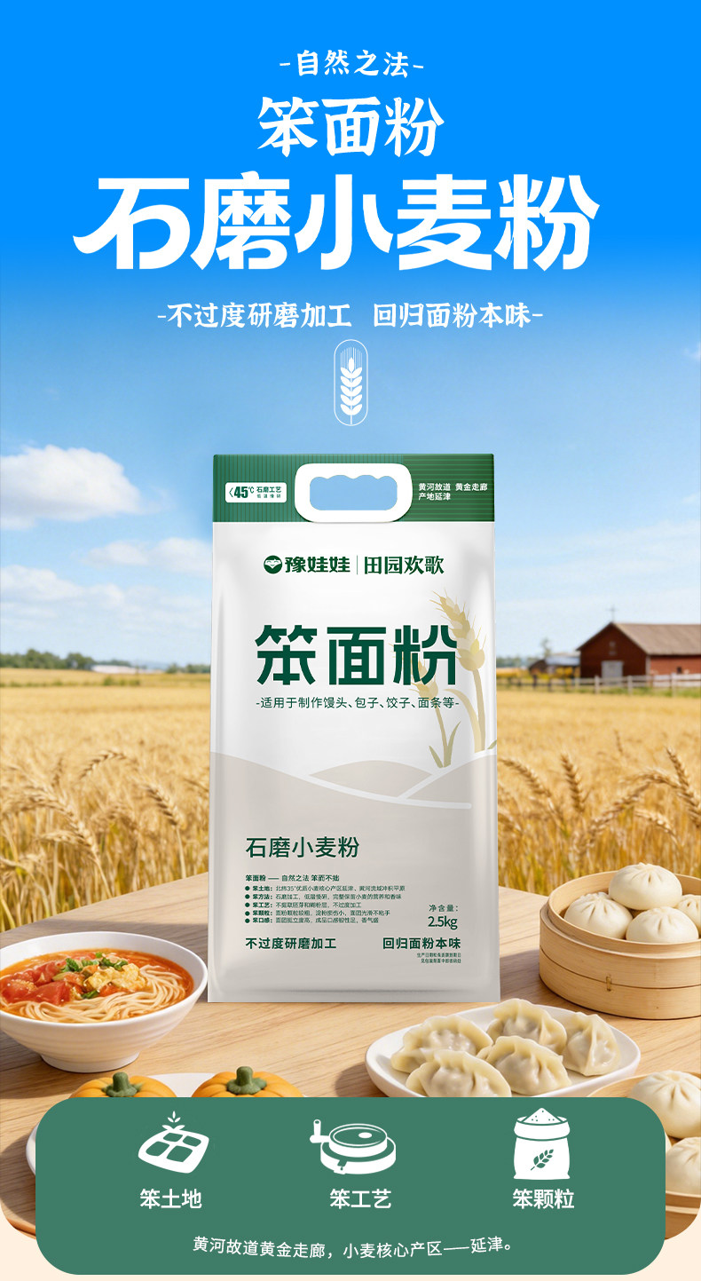 豫娃娃 石磨面粉 笨面粉 小麦粉 无添加 家用面食 中高筋面粉