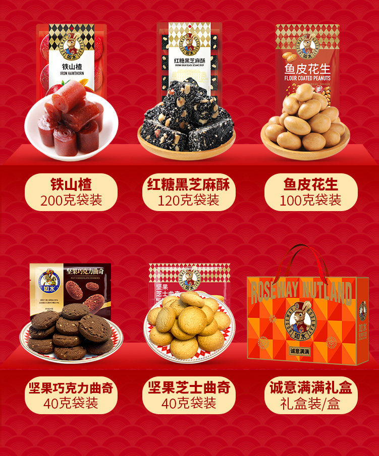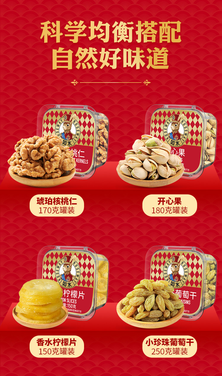 【如水诚意满满坚果礼盒1000g】春节年货干果零食休闲袋装送人