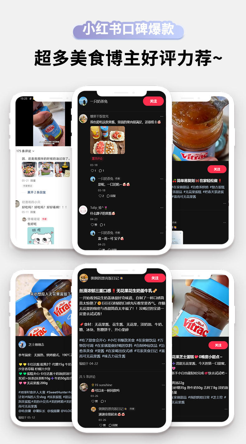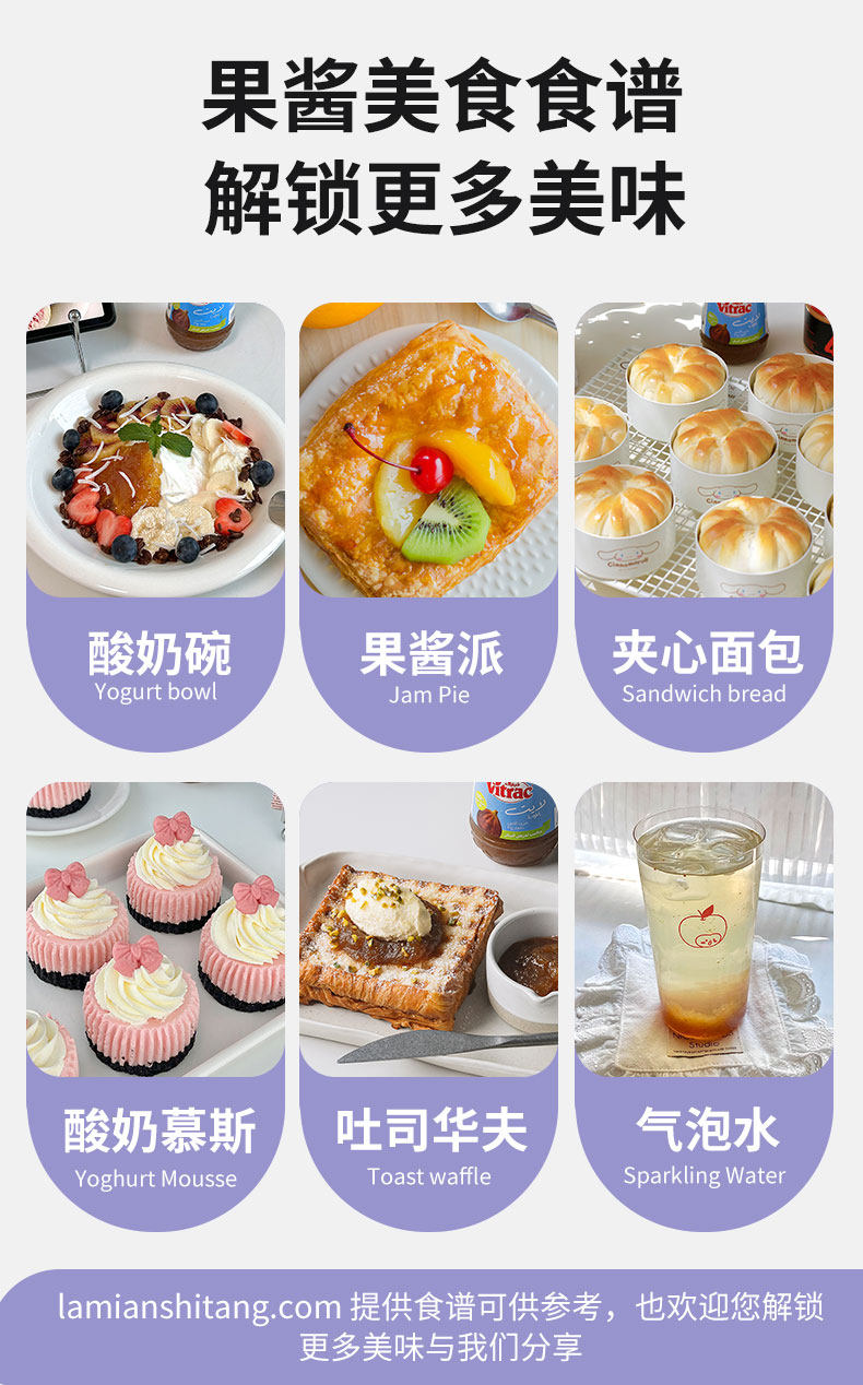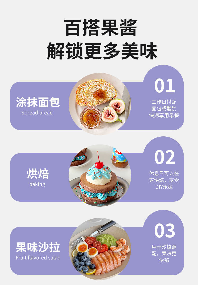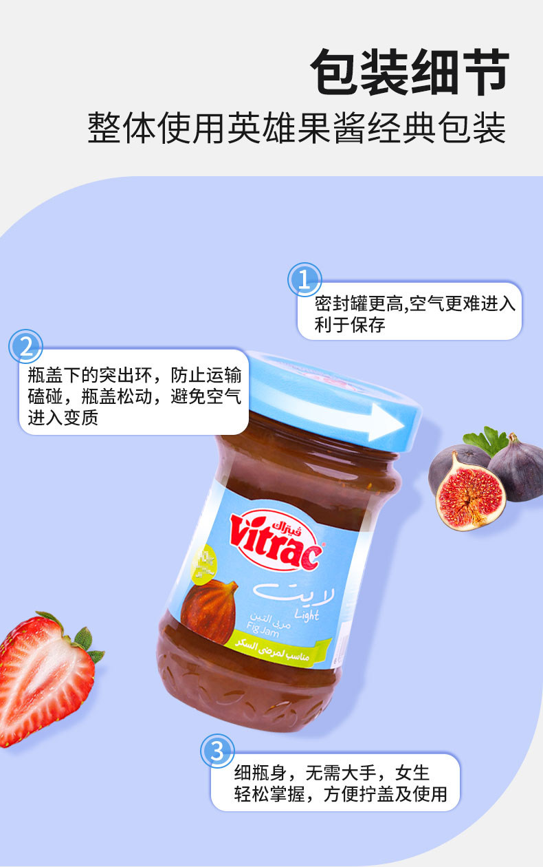VITRAC富而可、进口果酱、草莓果酱、杏无花果酱、无蔗糖、酸甜