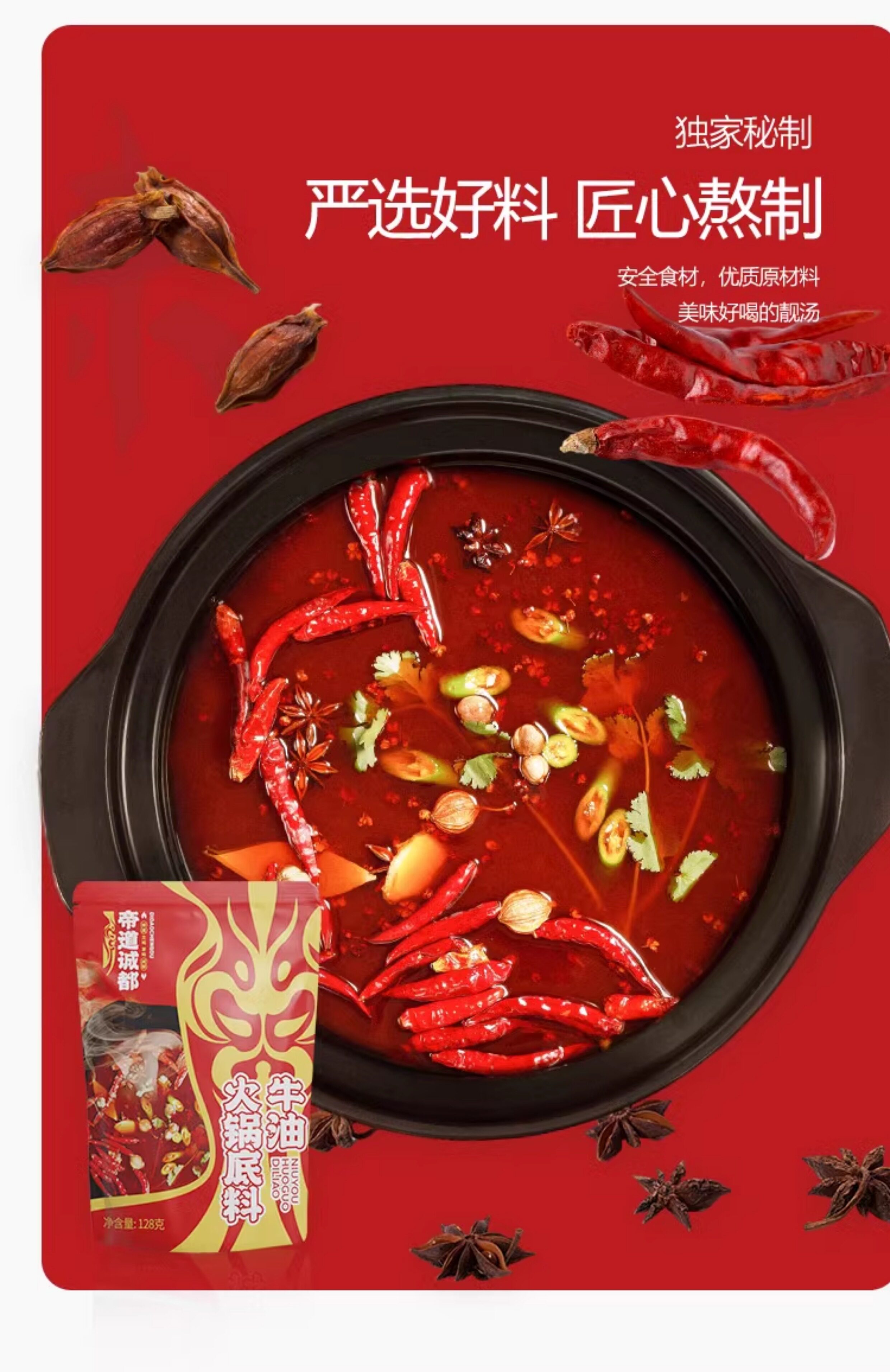 帝道诚都、牛油麻辣、番茄菌汤、清油麻辣、火锅底料、鸳鸯锅